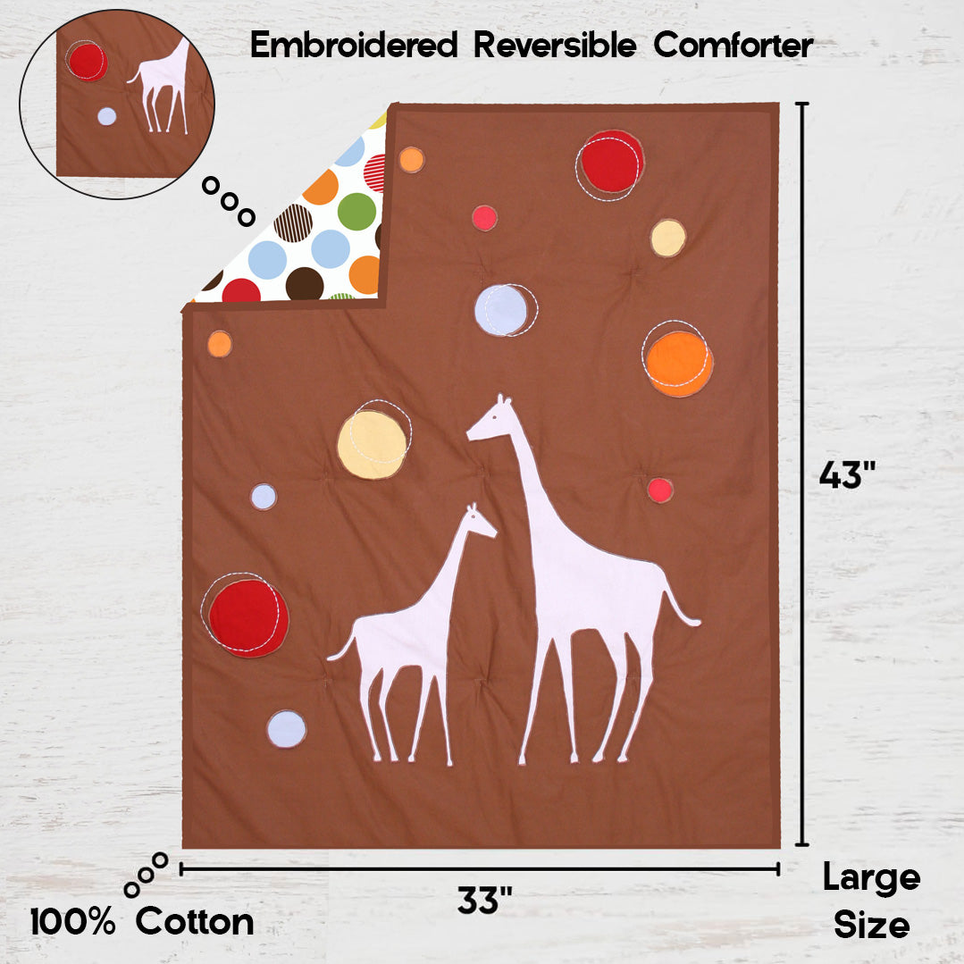 Bacati - Baby & Me Giraffe 4-Piece Crib Bedding Set with Diaper Stacker - Orange/Green/Blue/Red/Brown Unisex