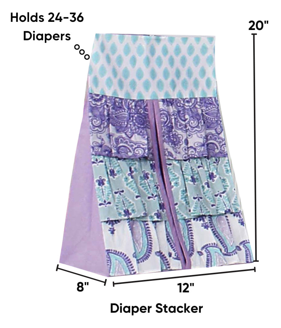 Bacati - Paisley Isabella 4-Piece Crib Bedding Set with Diaper Stacker - Lilac/Purple/Aqua Girls