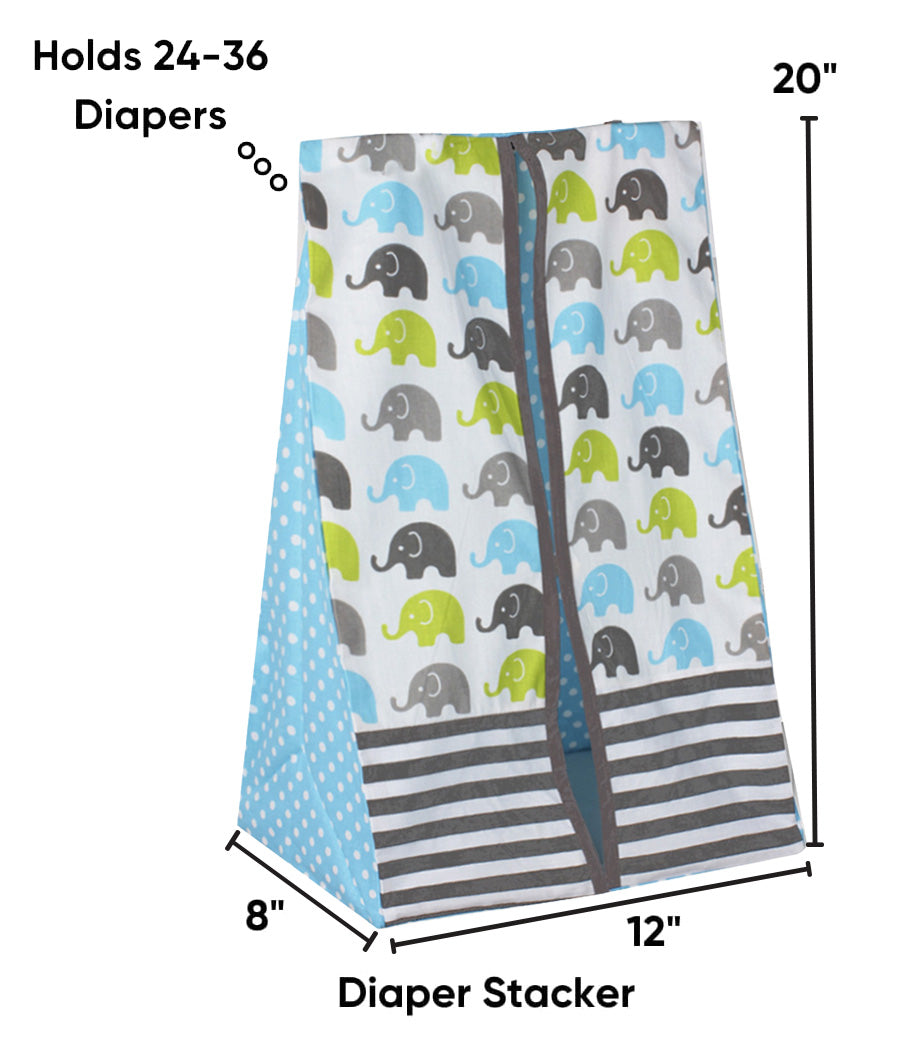 Bacati - Elephants 4-Piece Crib Bedding Set with Diaper Stacker - Aqua/Lime/Grey Unisex