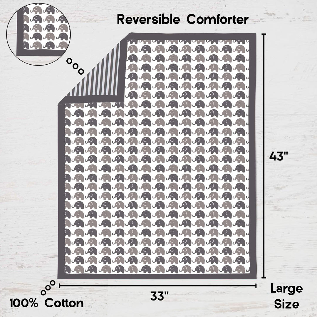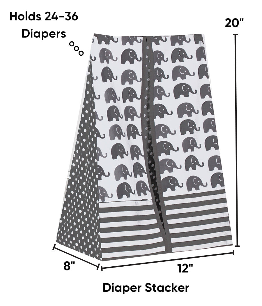 Bacati - Elephants 4-Piece Crib Bedding Set with Diaper Stacker - White/Grey Unisex