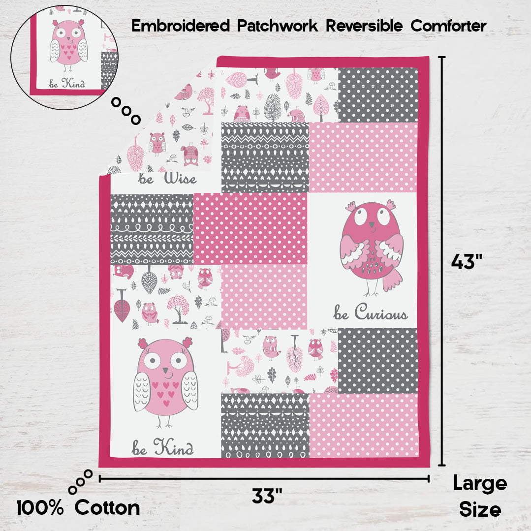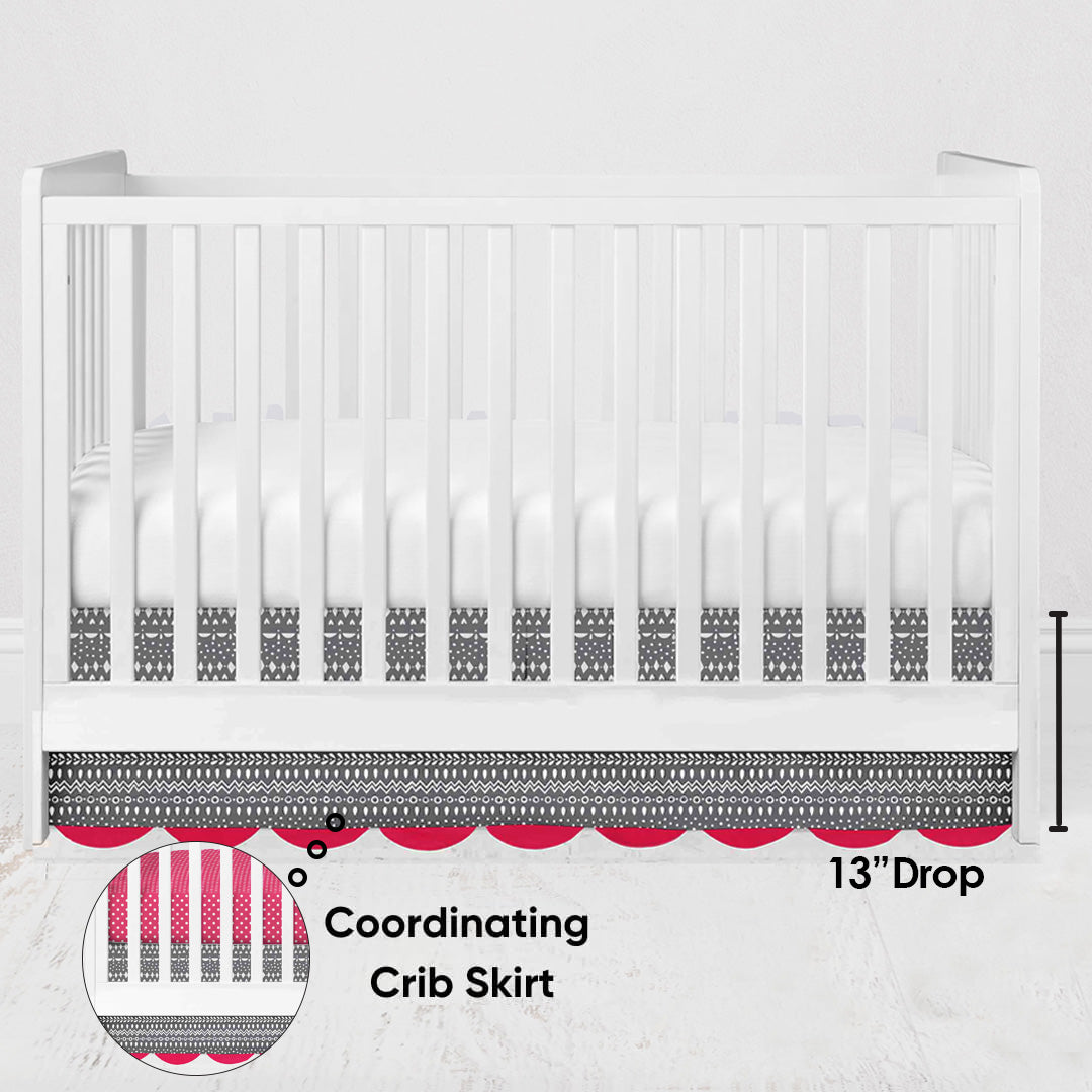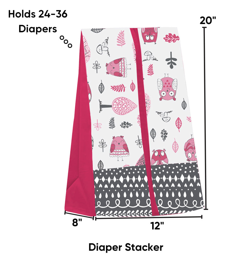 Bacati - Owls in the Woods 4-Piece Crib Bedding Set with Diaper Stacker - Pink/Grey Girls
