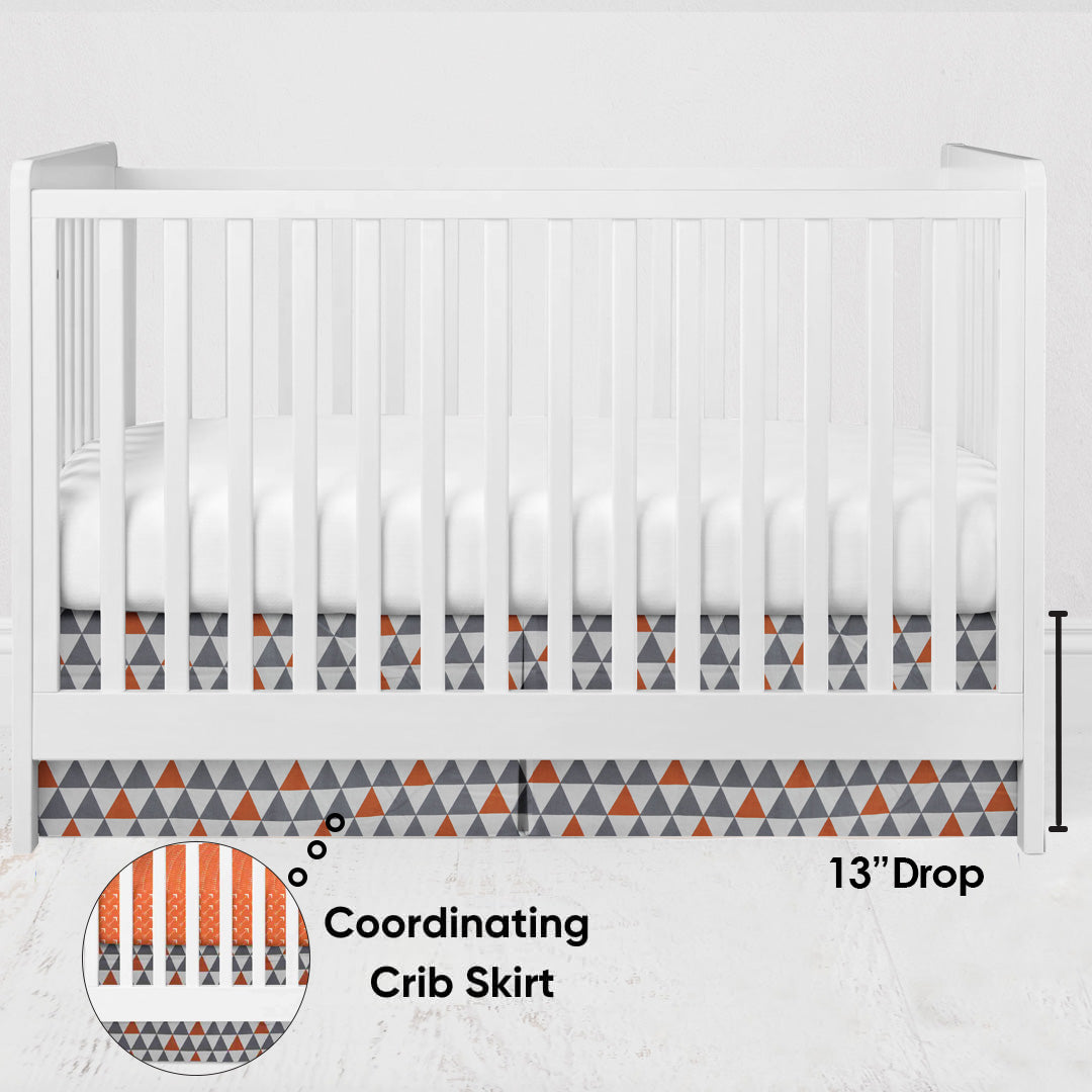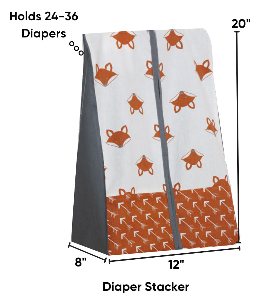 Bacati - Playful Fox 4-Piece Crib Bedding Set with Diaper Stacker - Orange/Grey Unisex
