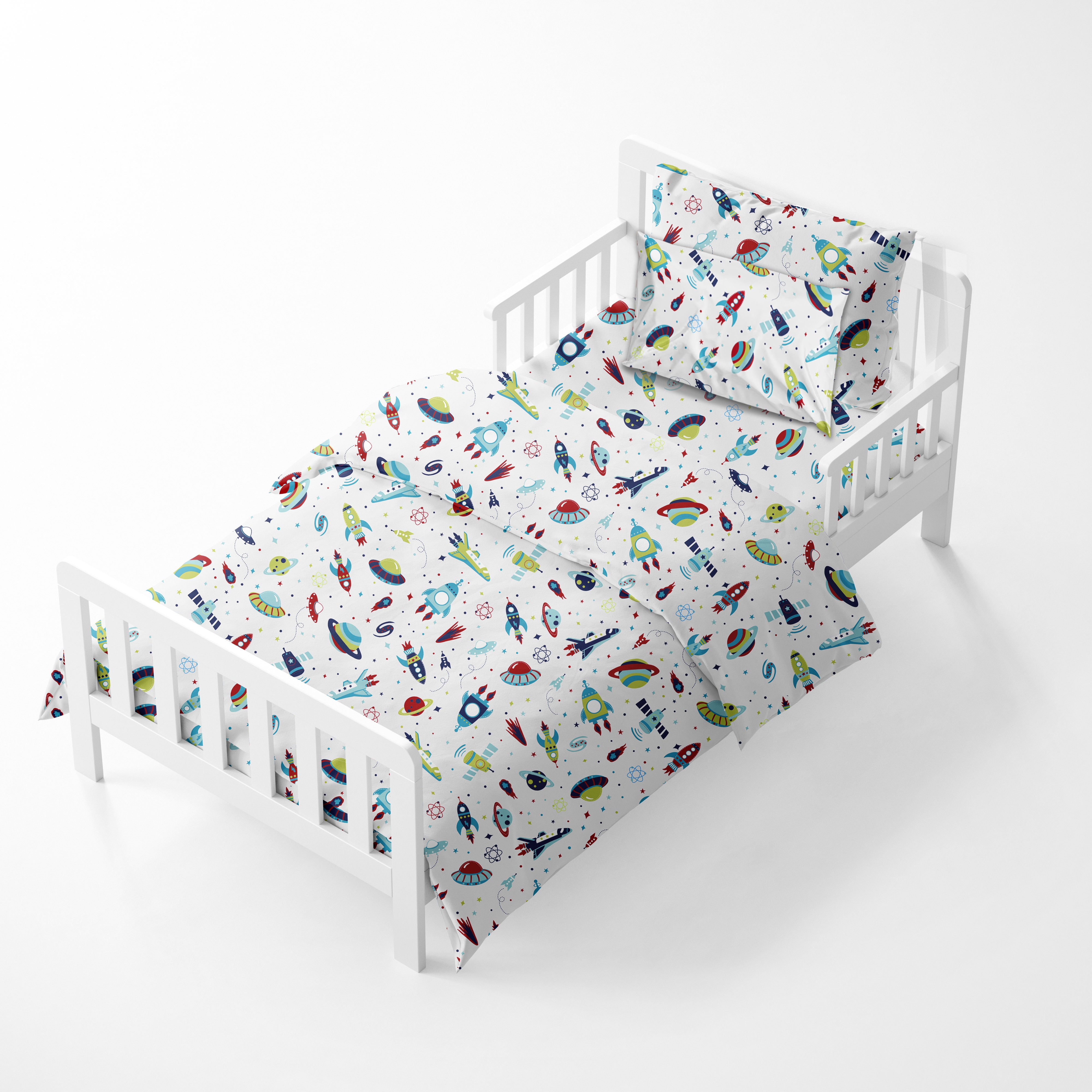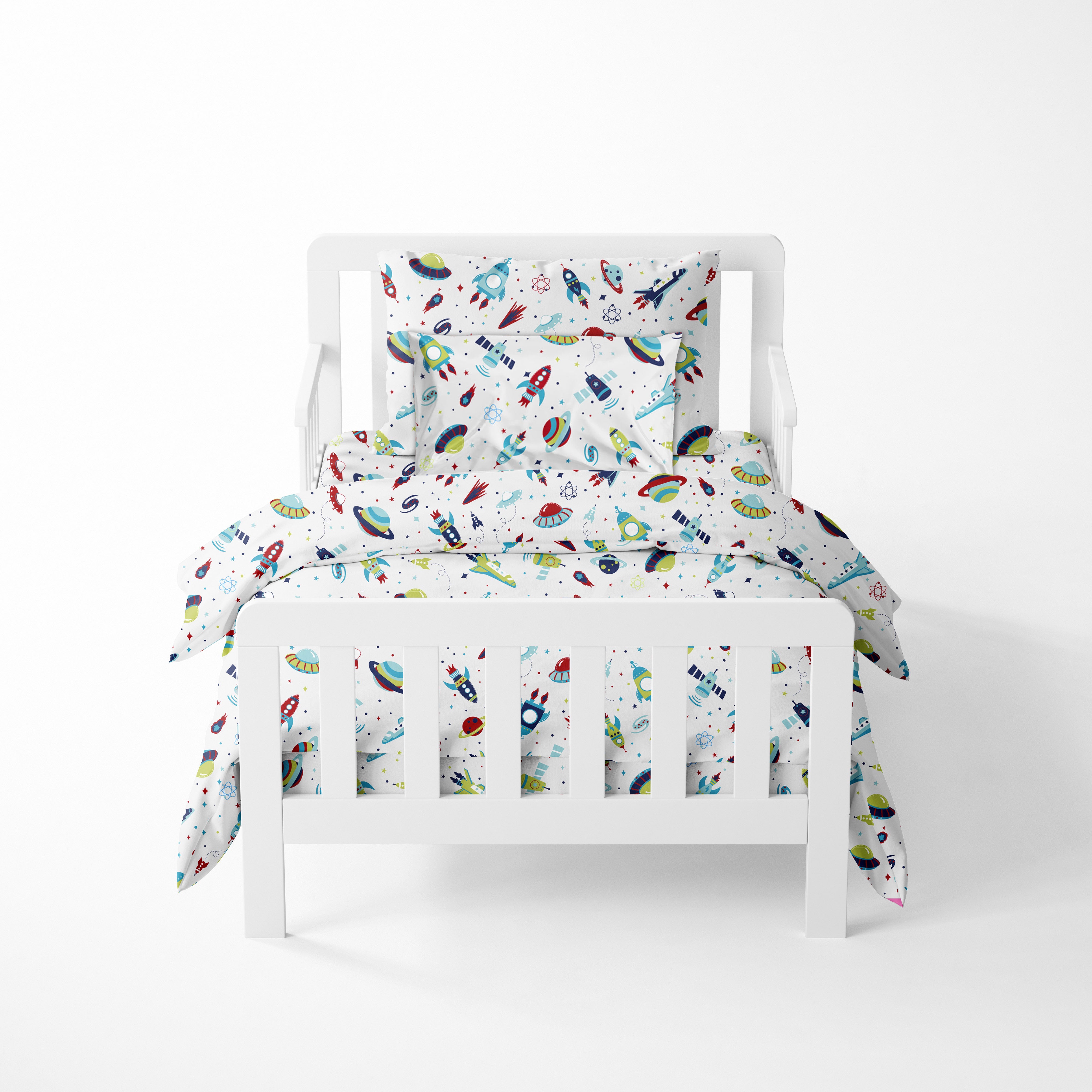 - Complete Toddler Bedding Set: Includes 1 reversible comforter, 1 fitted sheet, 1 Small Pillow, and 1 pillowcase with French ties for added security.