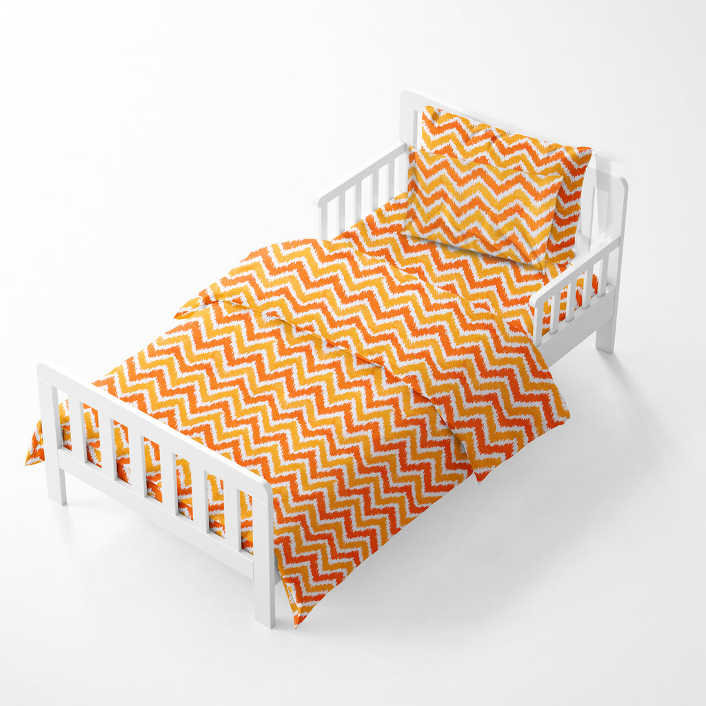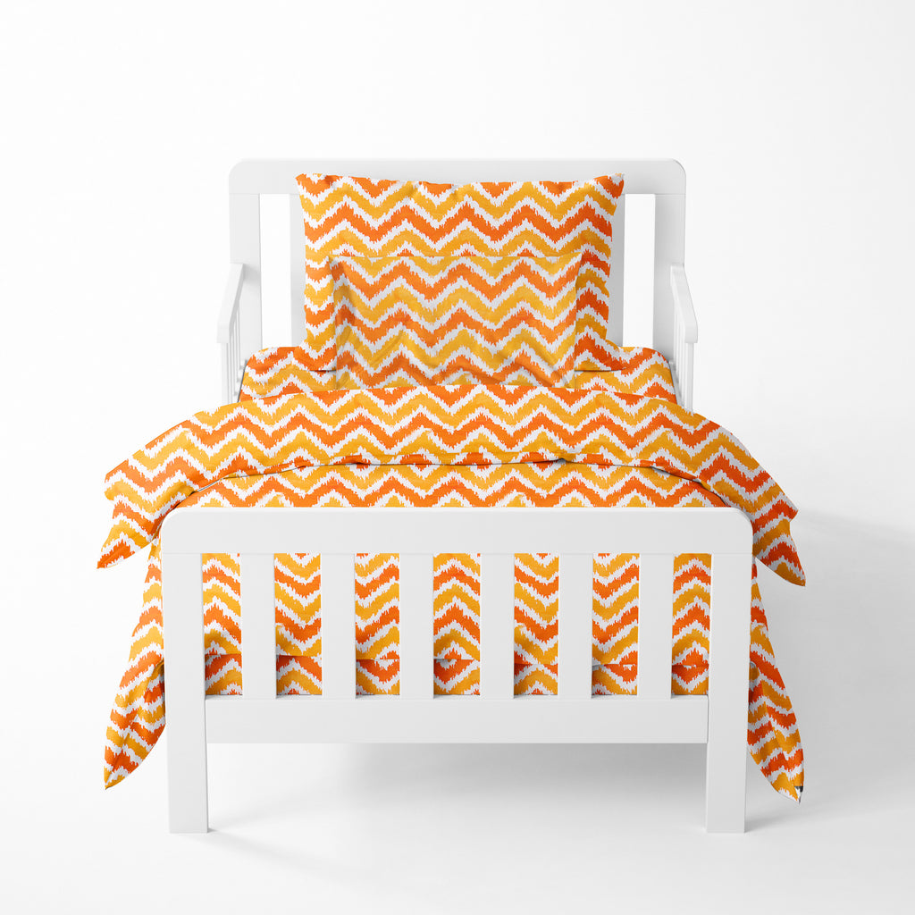 Bacati - 5 pc Toddler Bedding Set 100% Cotton Percale, Mix N Match Zigzag Allover Print, Orange/Grey