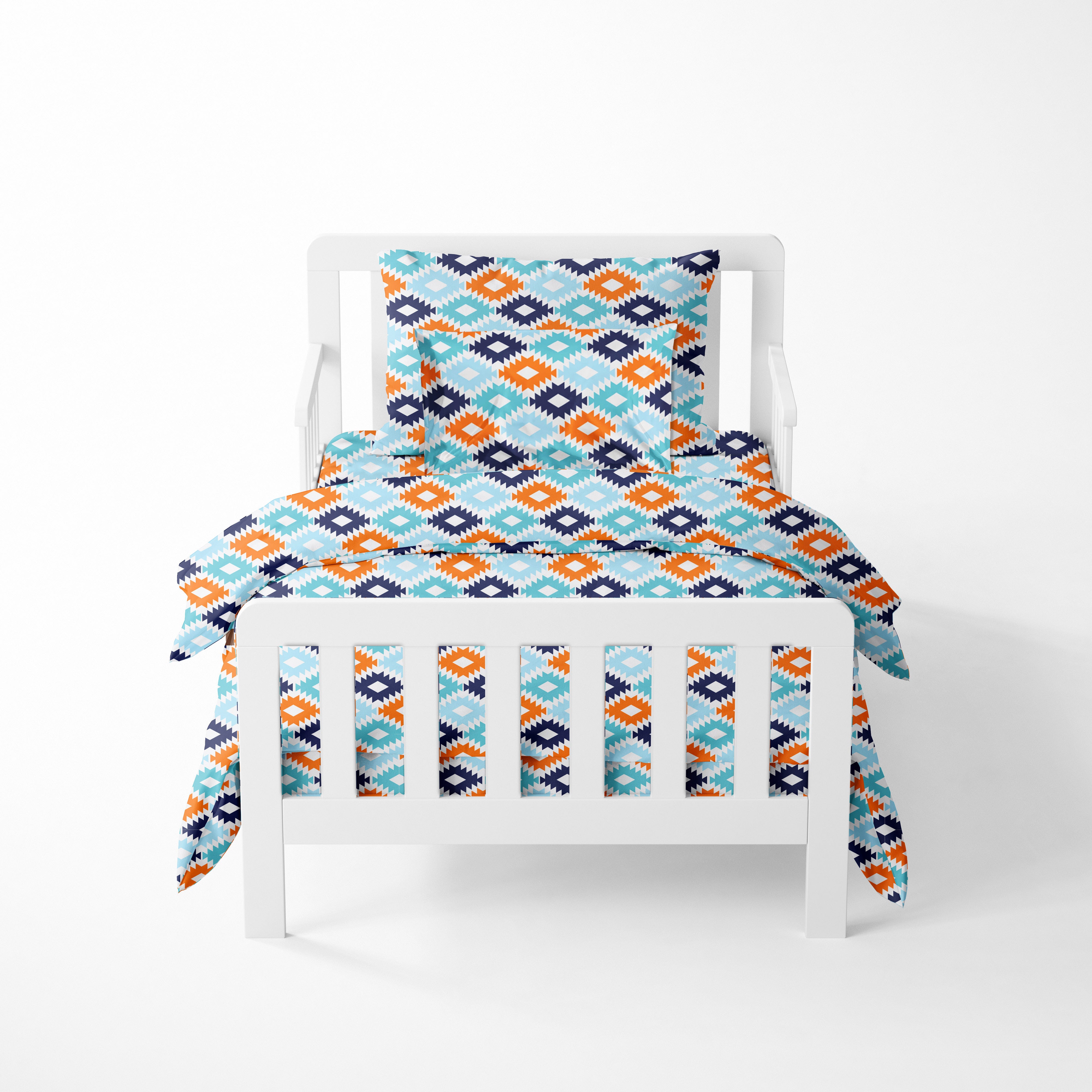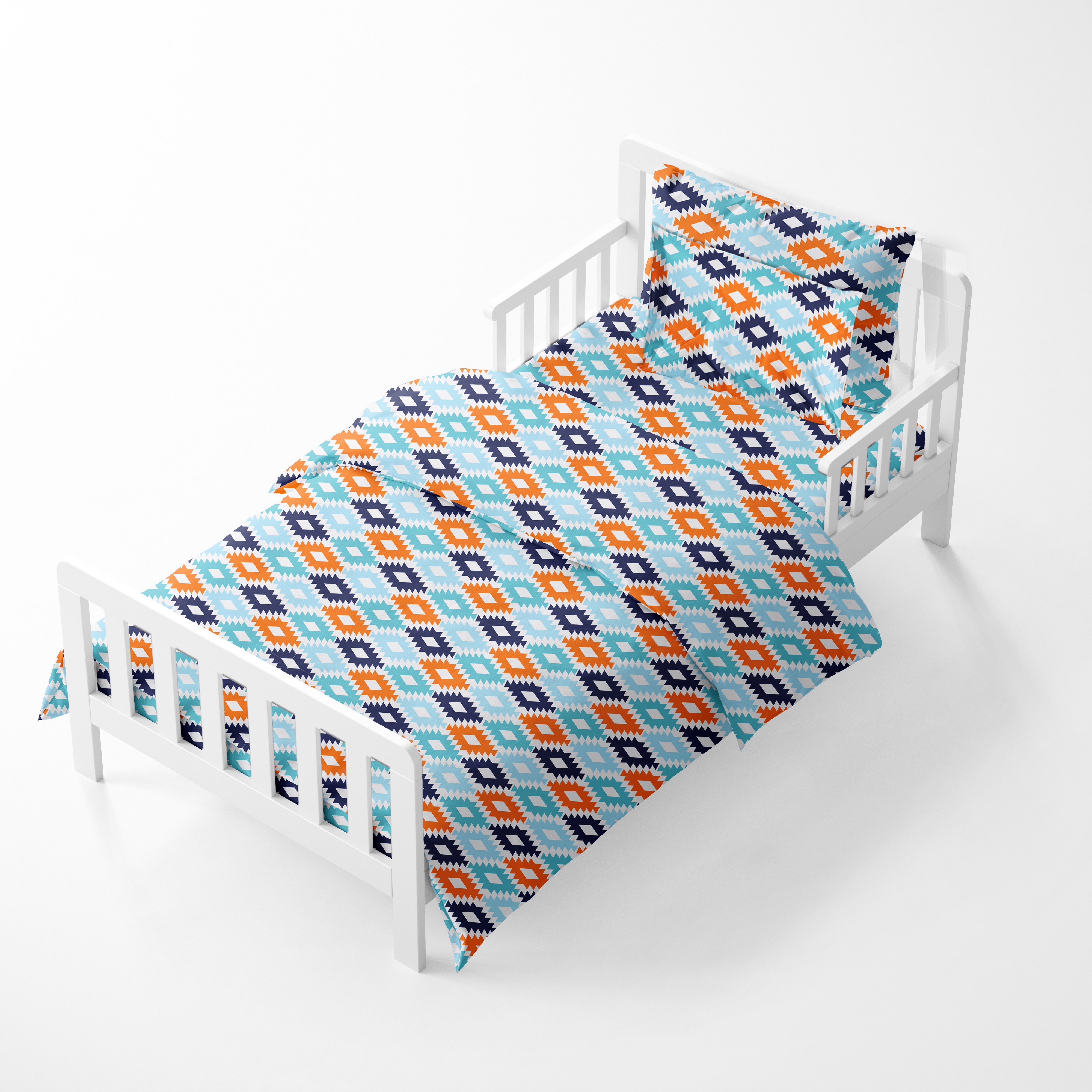 Complete Toddler Bedding Set: Includes 1 reversible comforter, 1 fitted sheet, 1 small Pillow, and 1 pillowcase with French ties for added security.