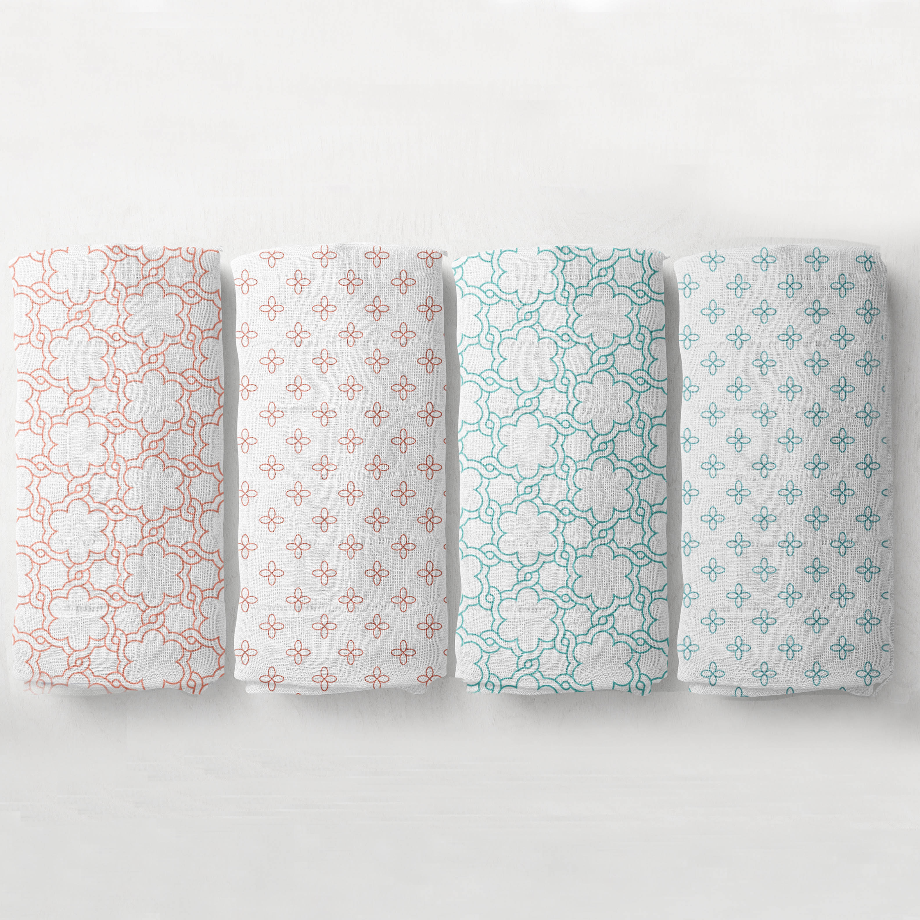 BREATHABLE MUSLIN SWADDLING BLANKETS: It includes four oversize swaddling blankets. These blankets are lightweight, Open Weave, Prewashed soft cotton swaddling blanket Breathable; helps reduce the risk of overheating, ideal for warmer climates. It's machine washable and gets softer with every wash. It has multiple uses; as a burp cloth, tummy time blanket, nursing and stroller cover, changing pad cover and much more. Size: 45 x 45 INCHES