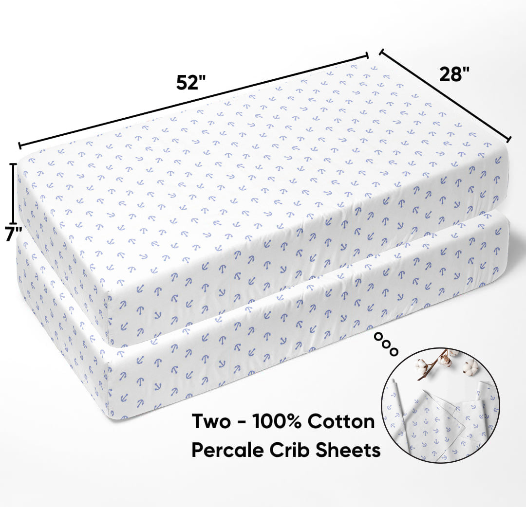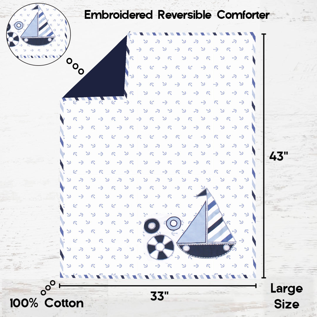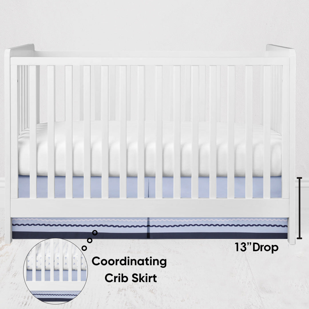 Bacati - Little Sailor Anchor 10-Piece Crib Bedding Set with Two Crib Sheets - Blue/Navy Boys