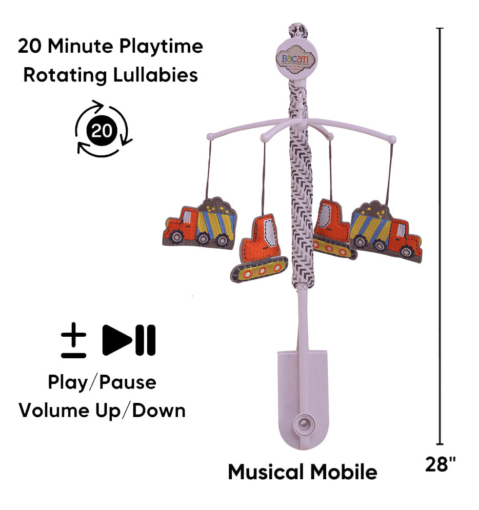 Bacati - Construction Yellow/Orange/Grey/Blue Musical Baby Crib Mobile
