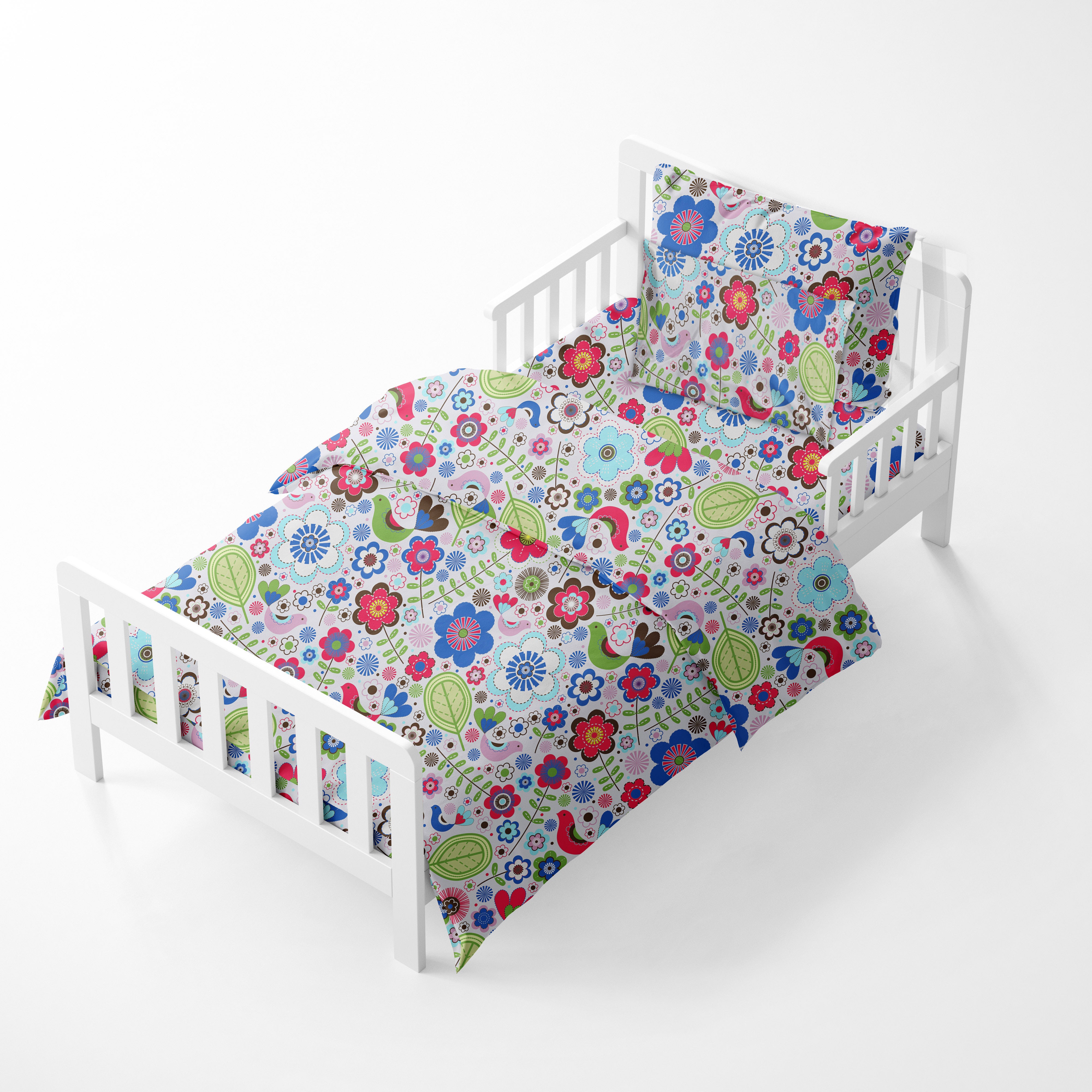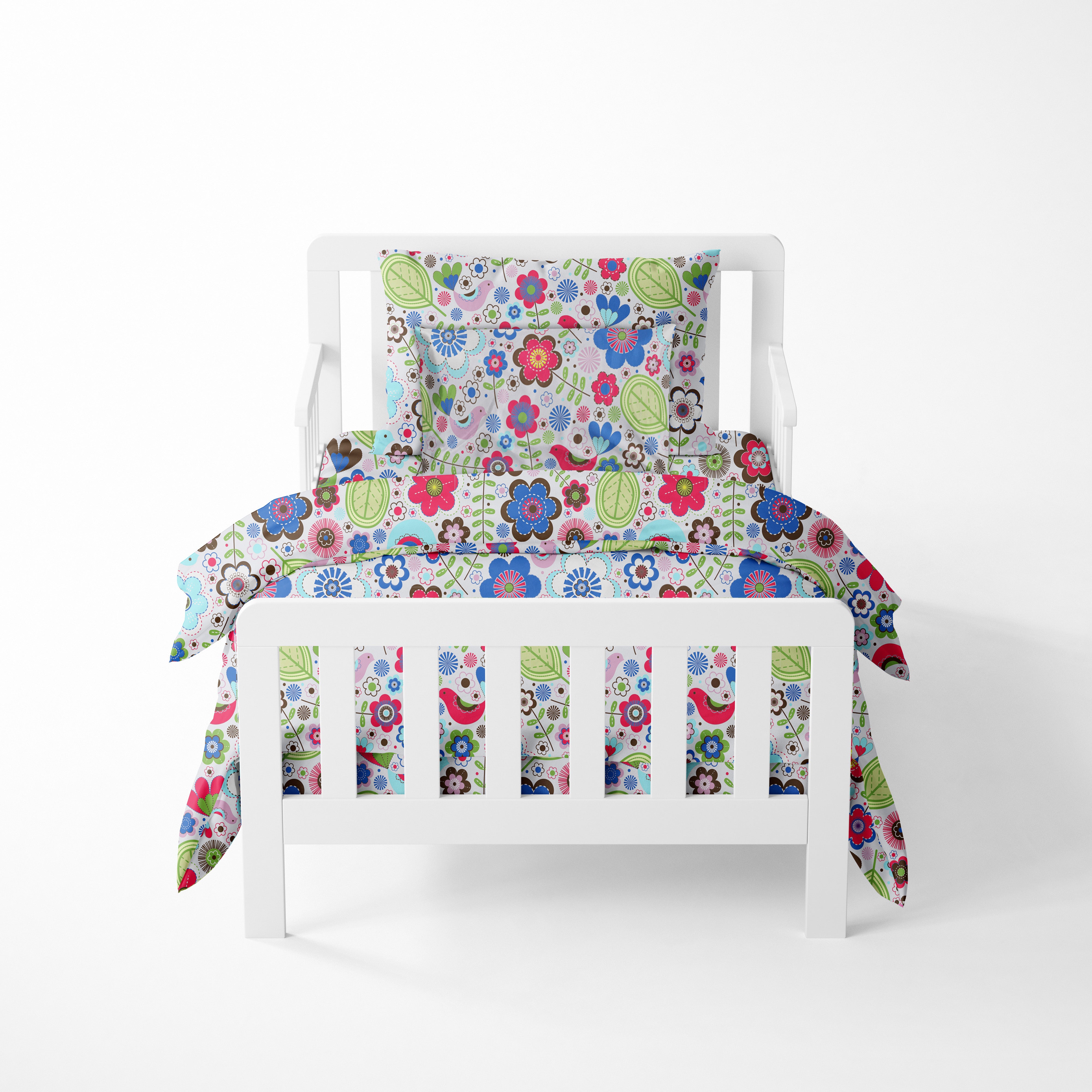 Complete Toddler Bedding Set: Includes 1 reversible comforter, 2 fitted sheet, 1 Pillow, and 1 pillowcase with French ties for added security.