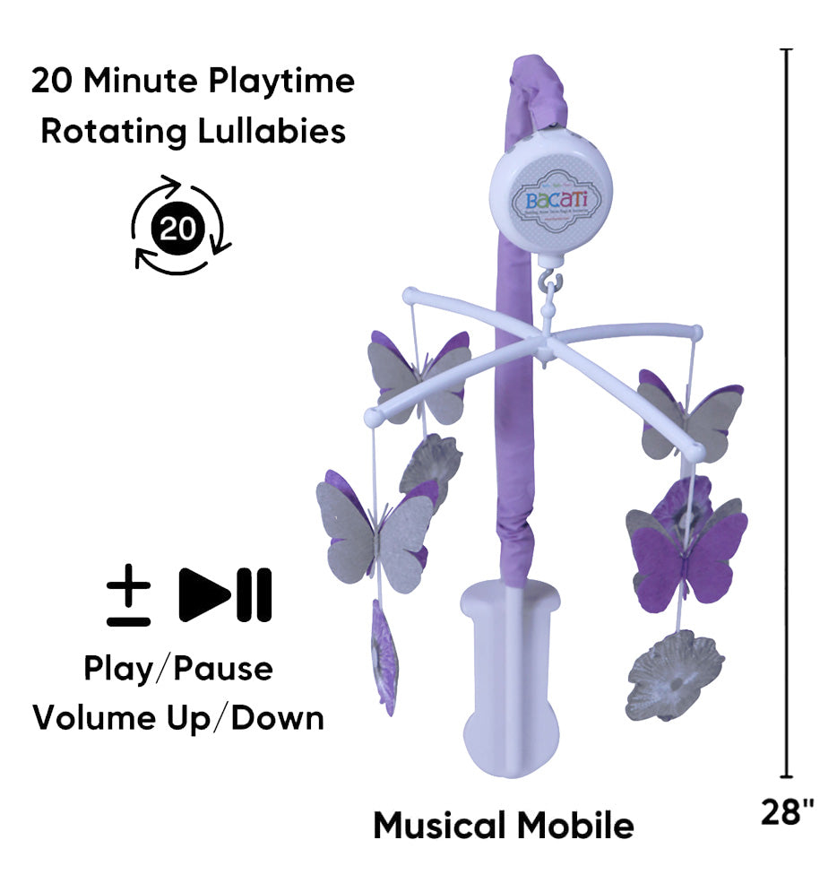 Bacati - Watercolor Flowers Purple Gray Musical Baby Crib Mobile