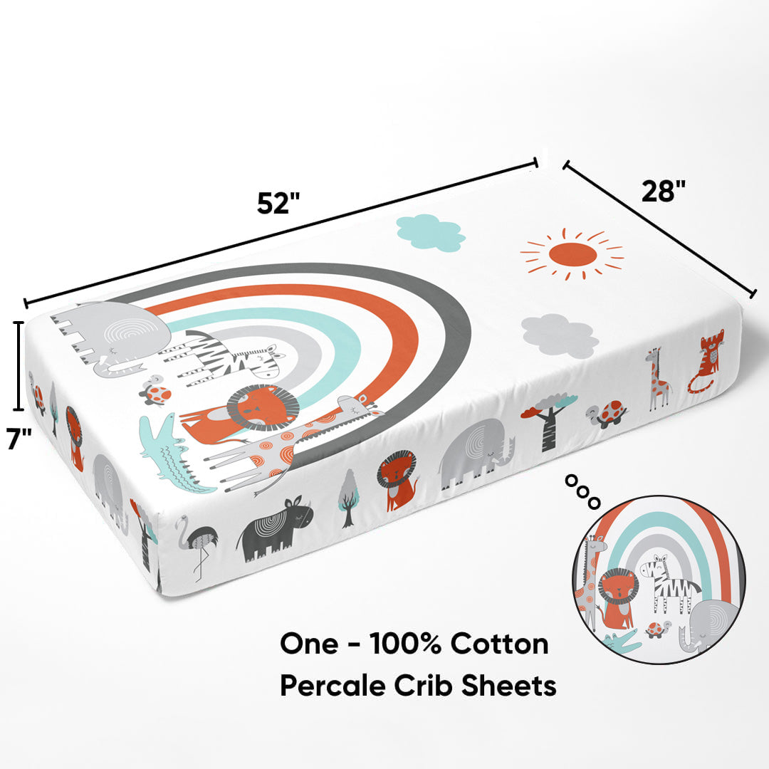 Bacati - Jungle Safari Animals 3 Piece Crib Bedding Set - Aqua/Orange/Grey
