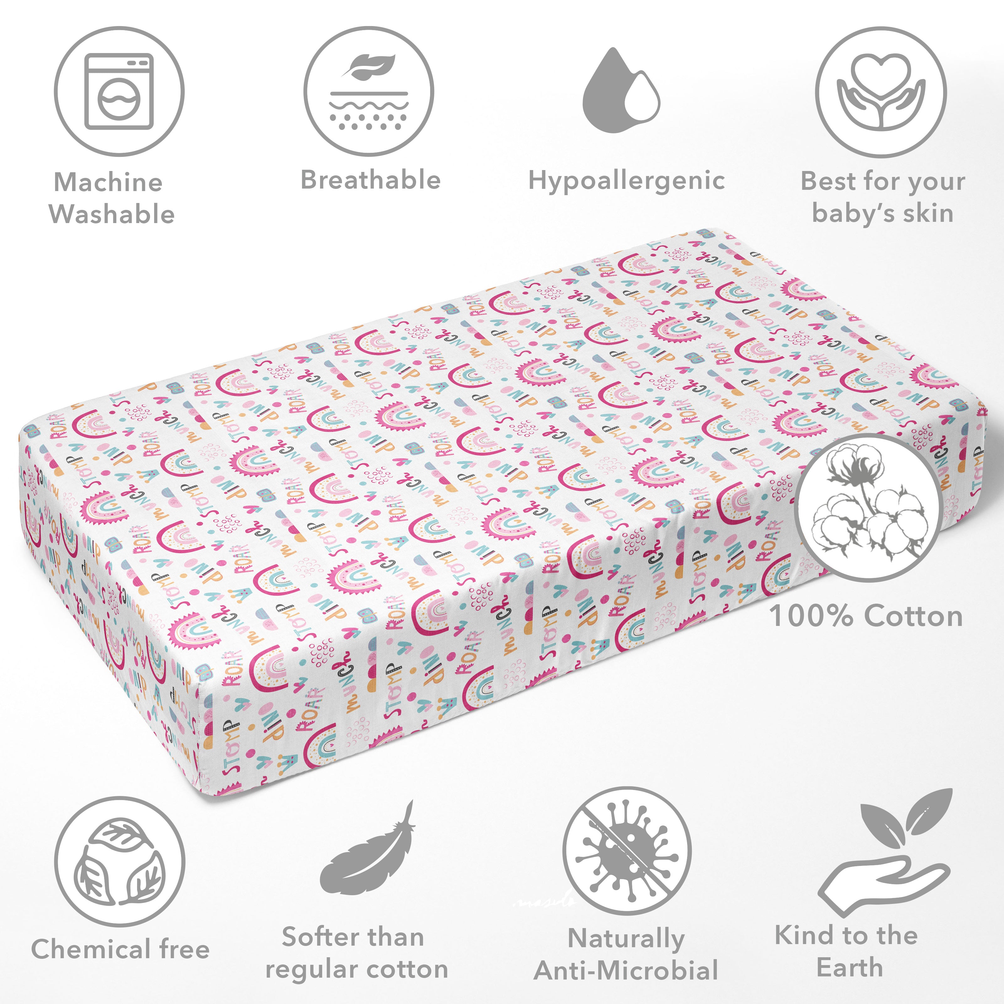 • 100% Premium Cotton Percale: Crafted from high-quality, breathable cotton, providing a smooth, crisp feel that’s gentle on your baby’s delicate skin.