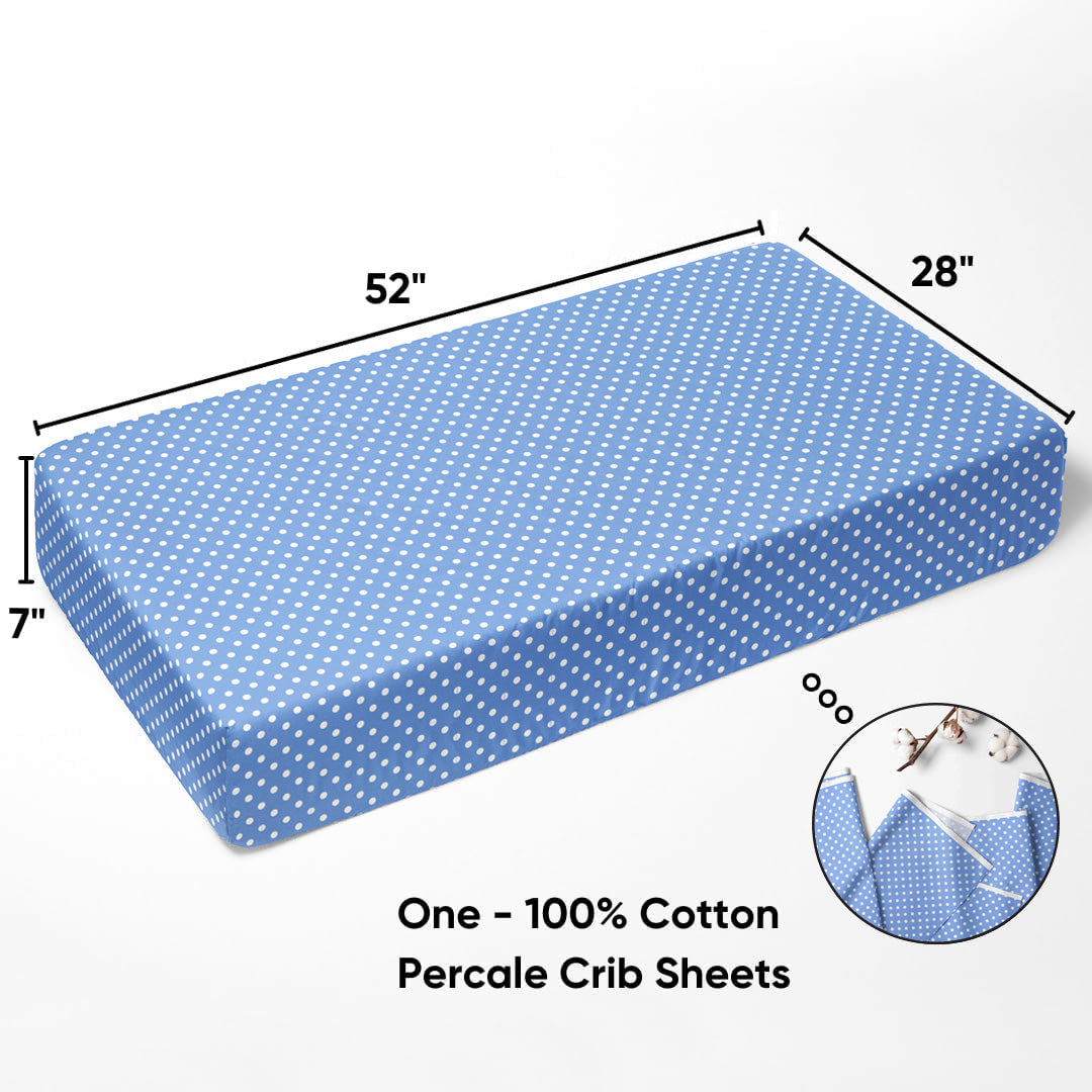 Mini Crib Fitted Sheet: On the crib fitted sheet, your little one will enjoy dreaming on top of the 100 percent cotton percale in Bacati Signature Print. With elastic around the top and bottom corners for added safety/fit, the crib sheet perfectly sized to ensure the snug fit around a US standard size crib mattress without mattress pads. Dimensions: 24 x 36 x 4 inches