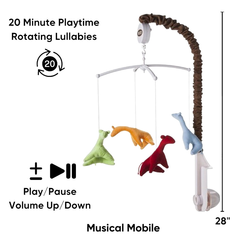 • 10 Piece Crib Bedding Set includes: 1 reversible crib comforter, 2 fitted crib sheets, 1 crib skirt, 1 diaper caddy, 1 musical mobile, 1 window valance, and 3 wall hangings