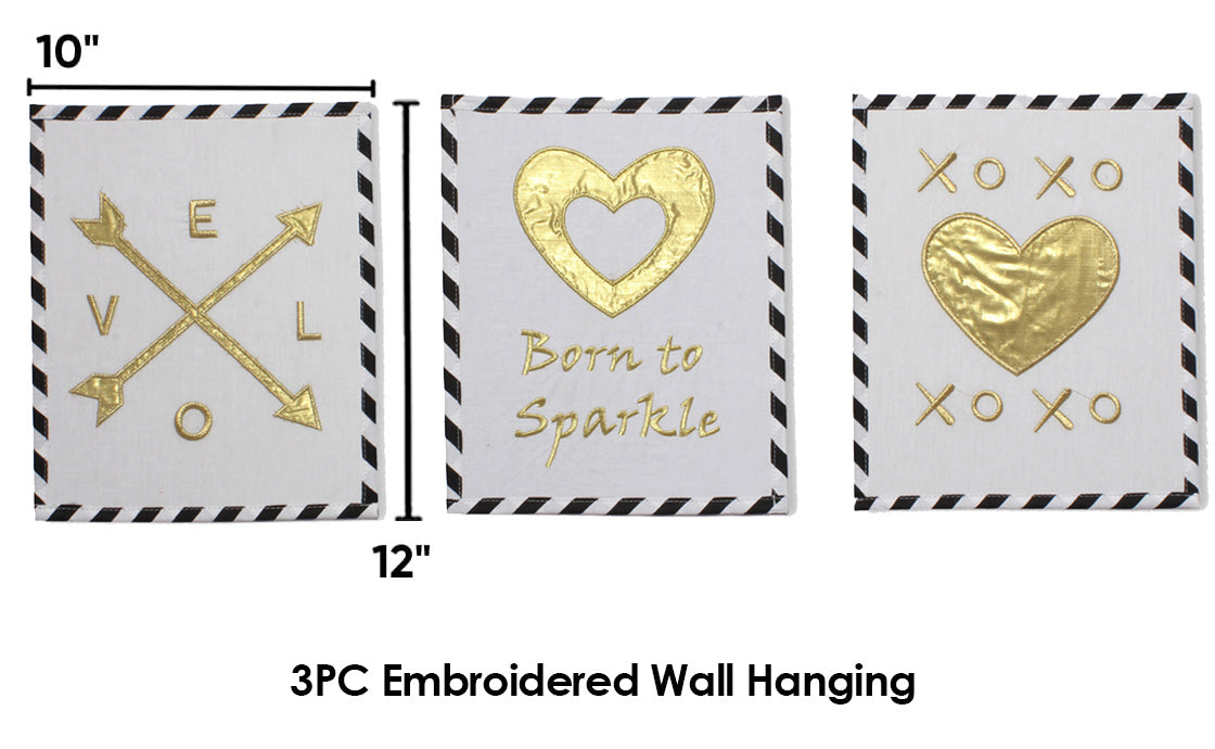 3 Piece Wall Hangings: These embroidered wall hangings are designed as an accessory to complete the theme of the nursery. Details on these wall hangings are sure to stimulate your baby’s mind while you are changing diapers etc. Dimensions: 10 x 10 inches to 9 x 13 inches depending on the style