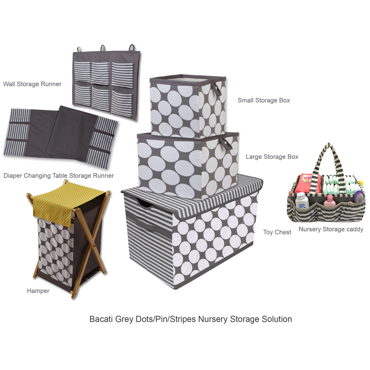 Bacati - Large Storage Tote Polka Dots and Pin Stripes Grey Neutral