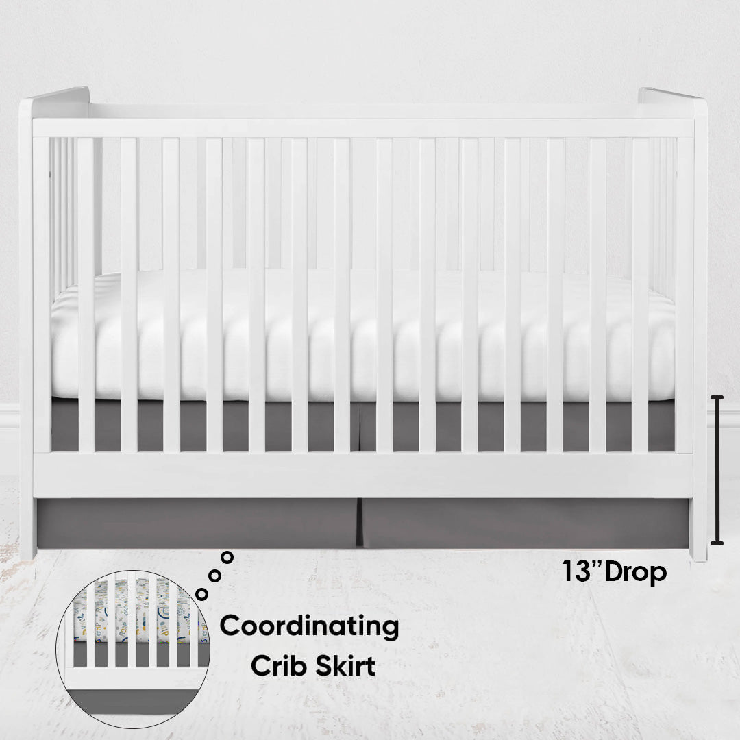 Solid Cotton Percale Crib Skirt / Bed Dust Ruffle: Adding a pop of color to your nursery, the crib skirt features simple yet classic print. It is perfect for a US standard sized crib. Dimensions: 52 x 27 inches Deck with 13 inches Drop