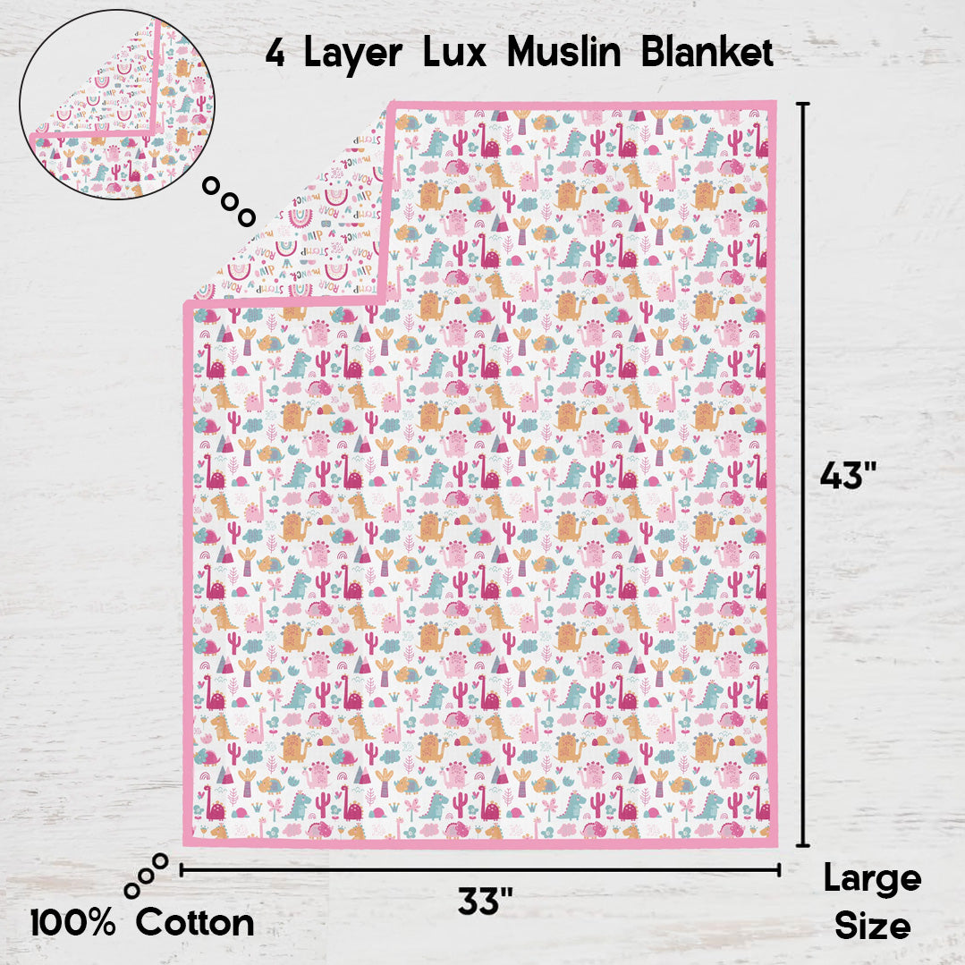 Reversible 4 layers of Muslin Lux Blanket/Playmat: The reversible Lux Blanket/playmat features Bacati Coordinated Signature Prints on both sides with solid border to accentuate the look. The Lux Blanket/playmat large enough, which allows for several years of use before it is outgrown. Ideally to be used as playmat for playtime/tummy time, bonding with parents and later as a toddler comforter. Dimensions: 33 x 43 inches with 4 layers of muslin fabric