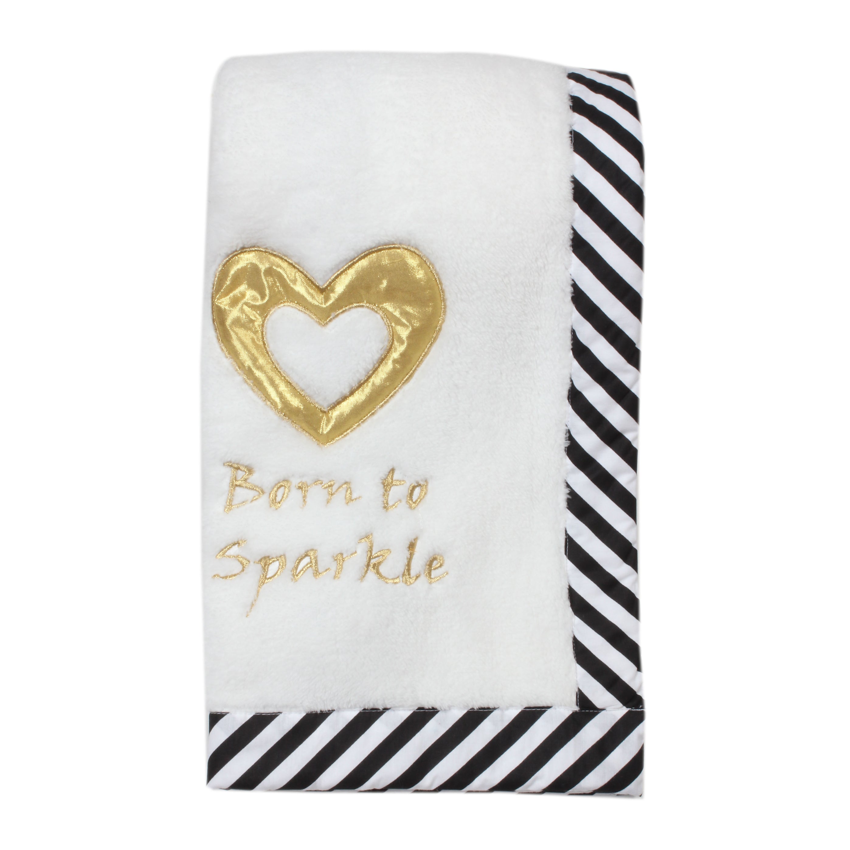 Bacati - Embroidered Baby Plush Blanket, Love Aztec Black Gold