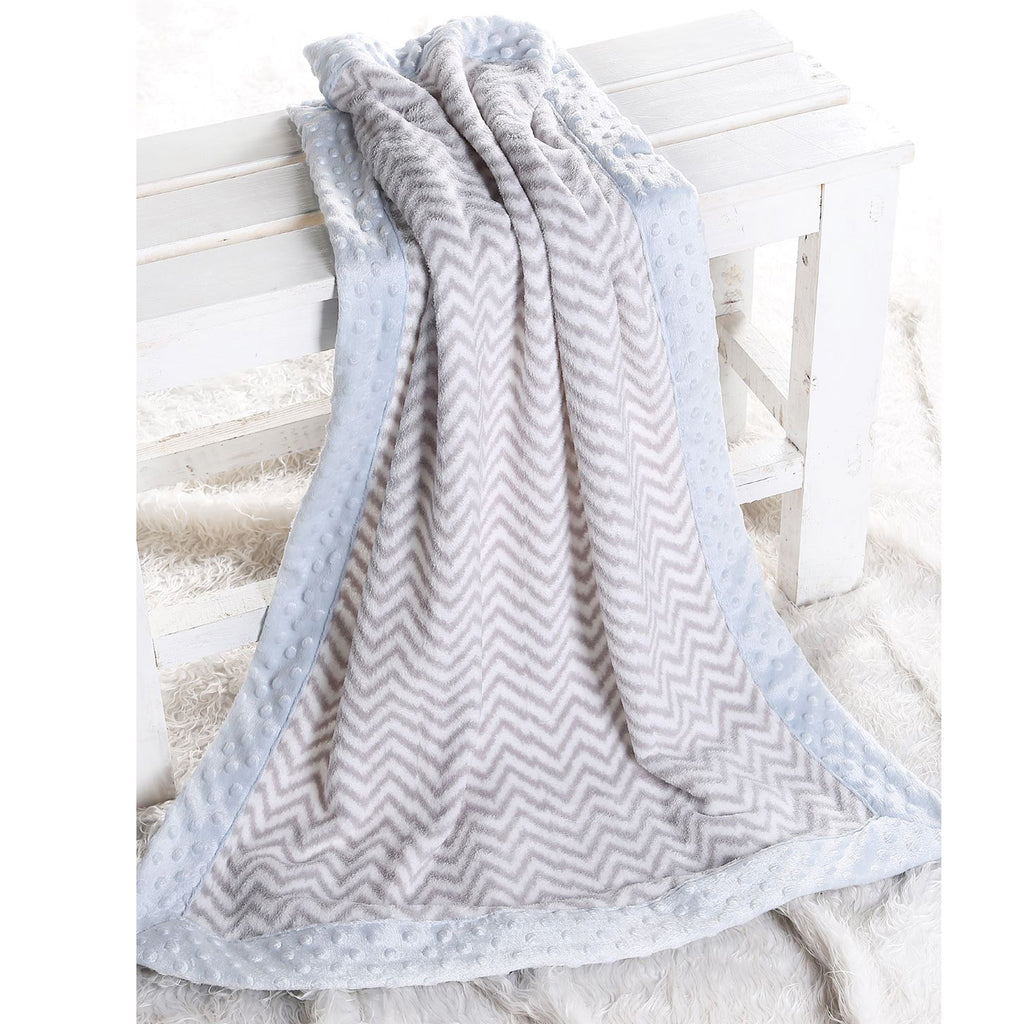 Bacati - Elephants Blue/GreyEmbroidered Plush Blanket, Elephants Blue/Grey with Multiple Options