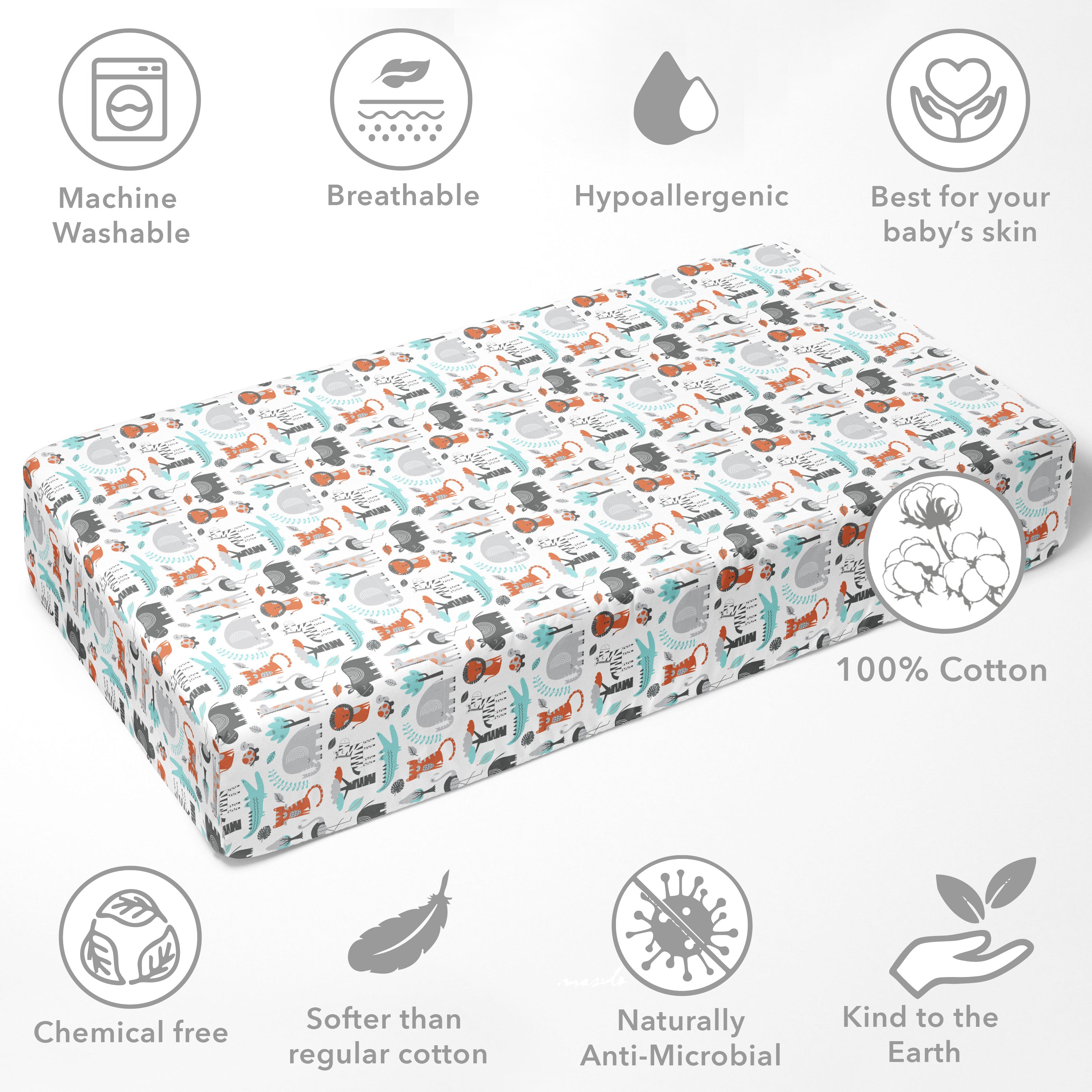 • 100% Premium Cotton Percale: Crafted from high-quality, breathable cotton, providing a smooth, crisp feel that’s gentle on your baby’s delicate skin.