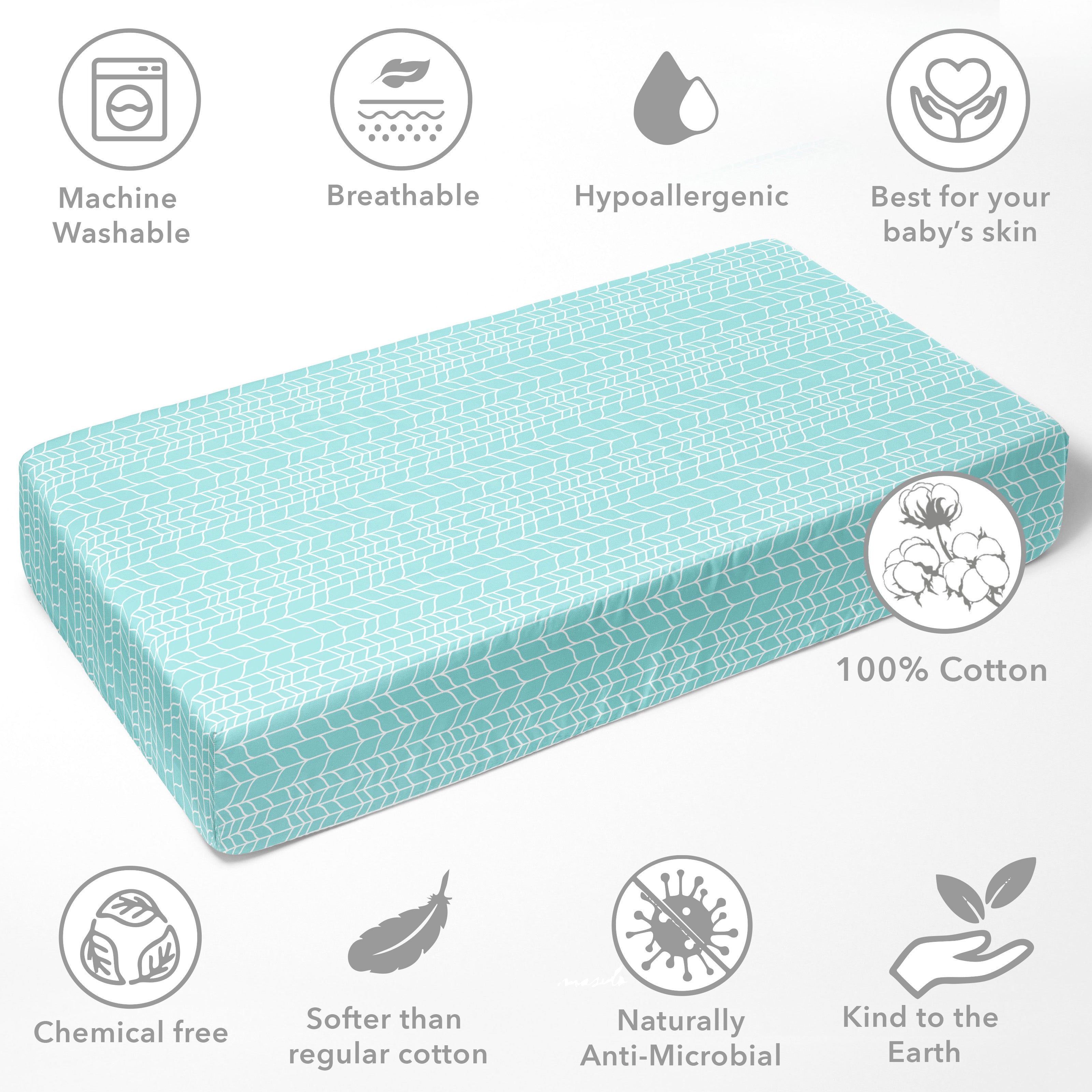 • 100% Premium Cotton Percale: Crafted from high-quality, breathable cotton, providing a smooth, crisp feel that’s gentle on your baby’s delicate skin.