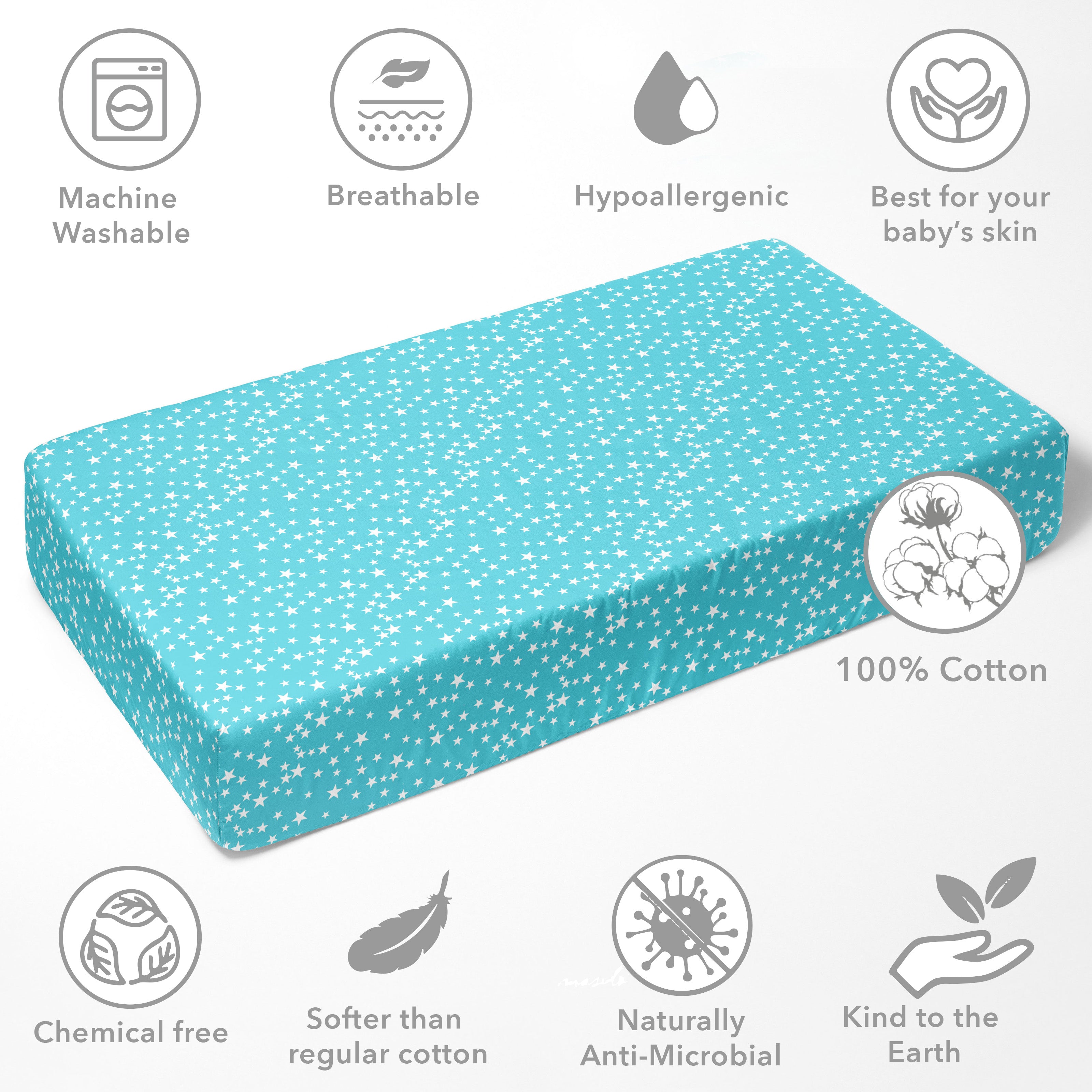• 100% Premium Cotton Percale: Crafted from high-quality, breathable cotton, providing a smooth, crisp feel that’s gentle on your baby’s delicate skin.