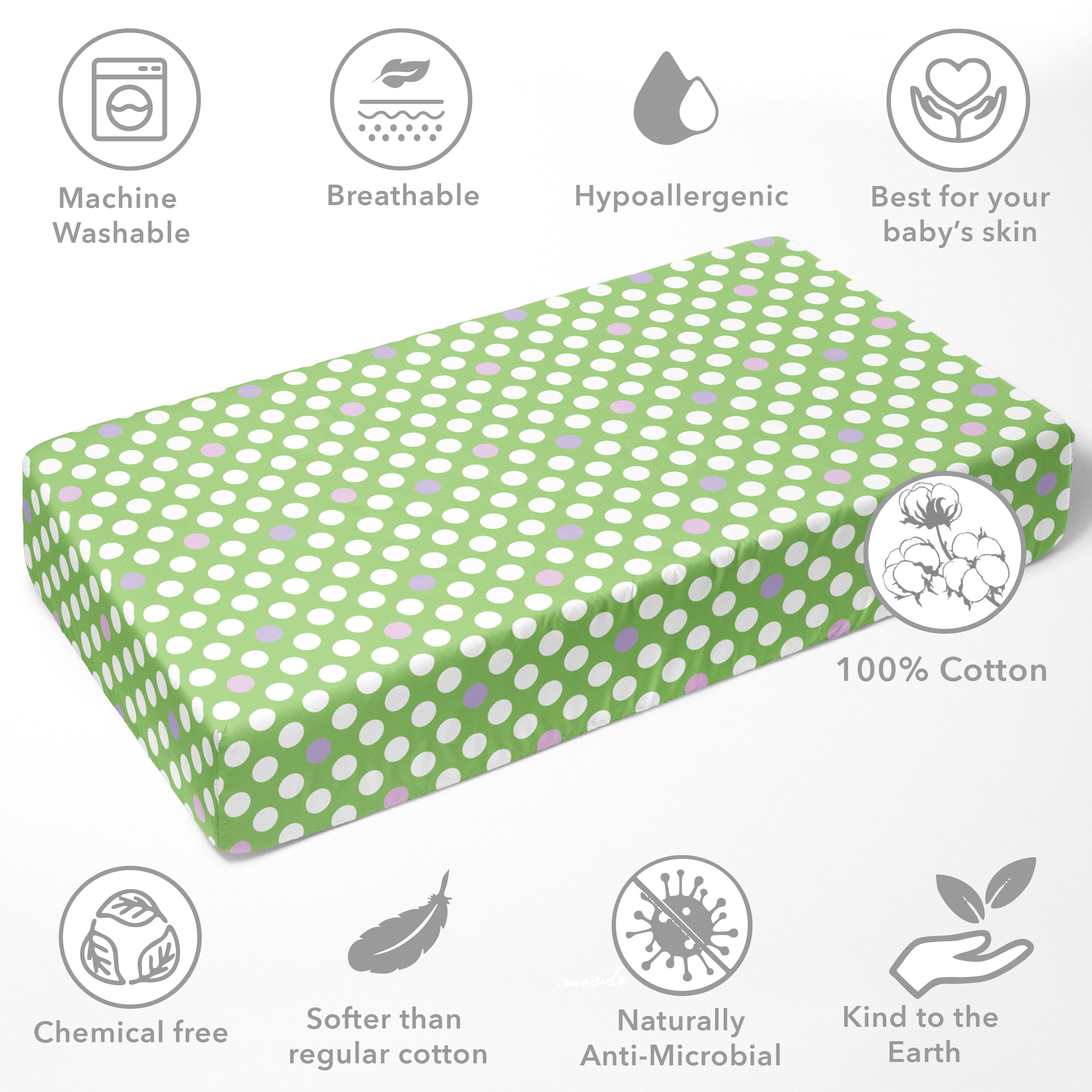 Bacati - Green/Pink/Lilac Dots Crib or Toddler Bed Fitted Sheet 100% Cotton Percale