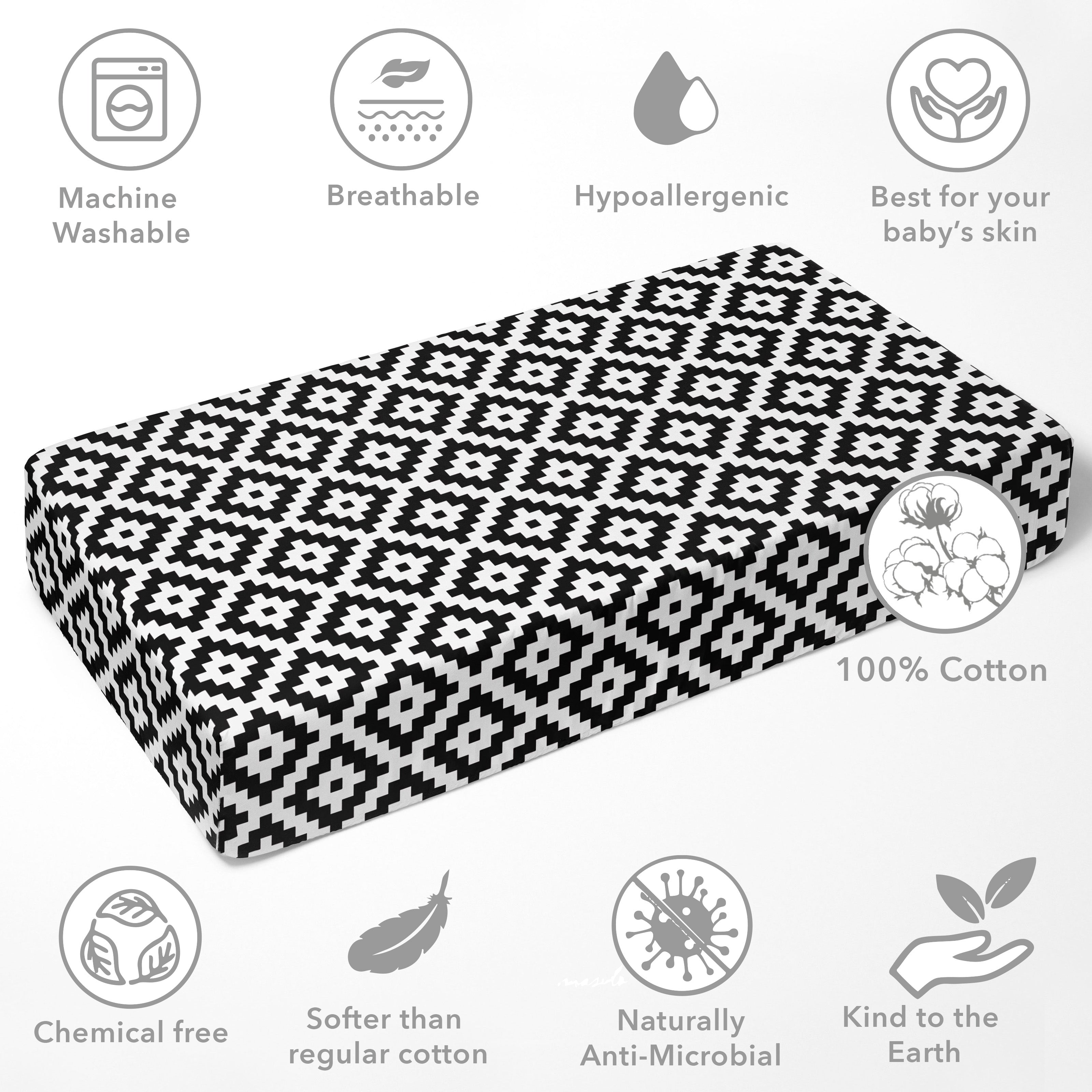 Bacati - Crib or Toddler Bed Fitted Sheet, Aztec Love Diamonds Black