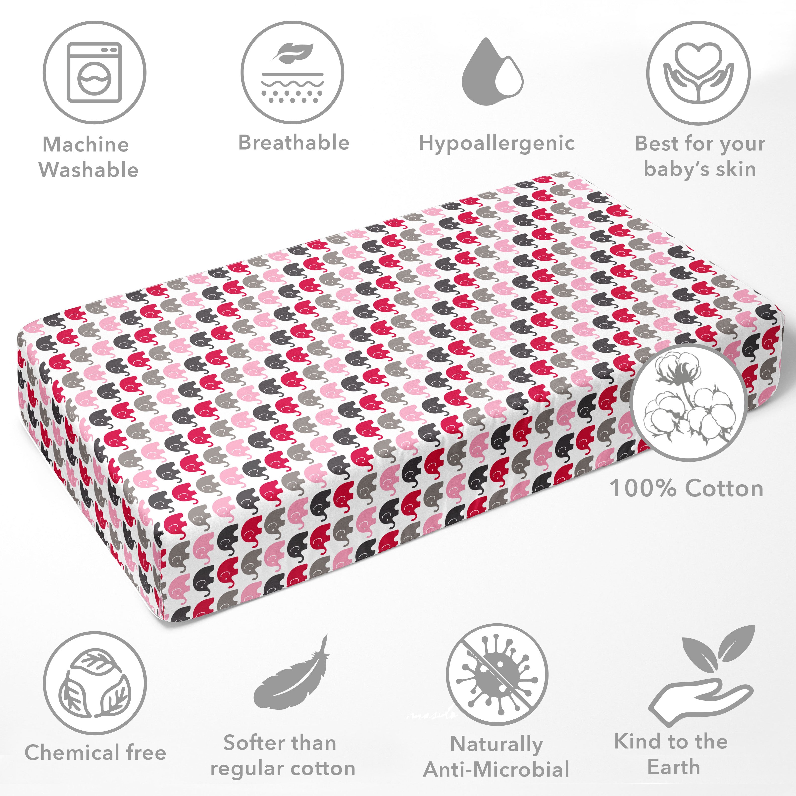 Bacati - Crib or Toddler Bed Fitted Sheet Elephants, Pink/Grey