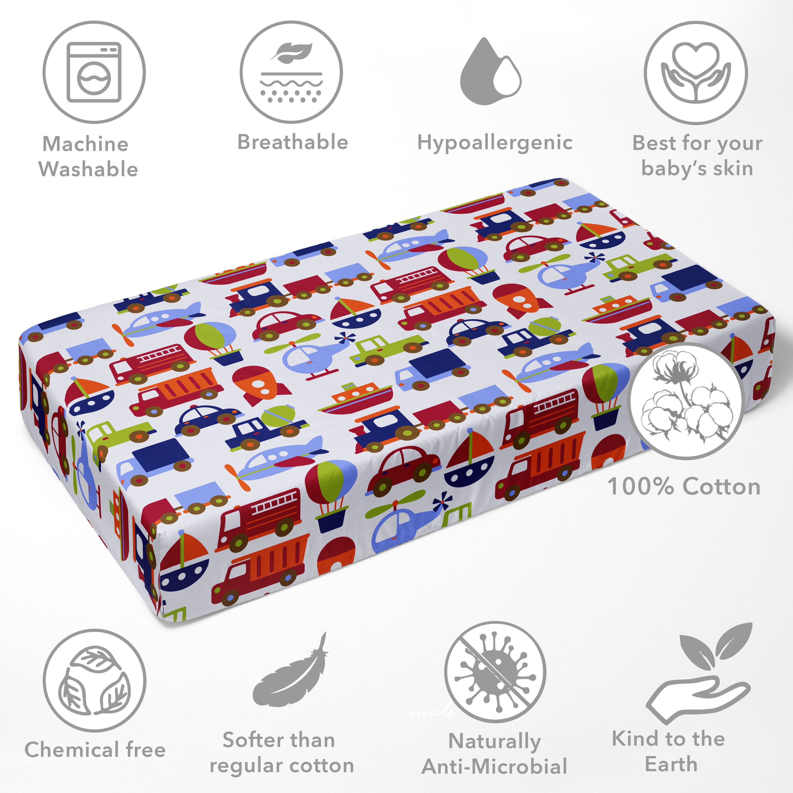 • 100% Premium Cotton Percale: Crafted from high-quality, breathable cotton, providing a smooth, crisp feel that’s gentle on your baby’s delicate skin.