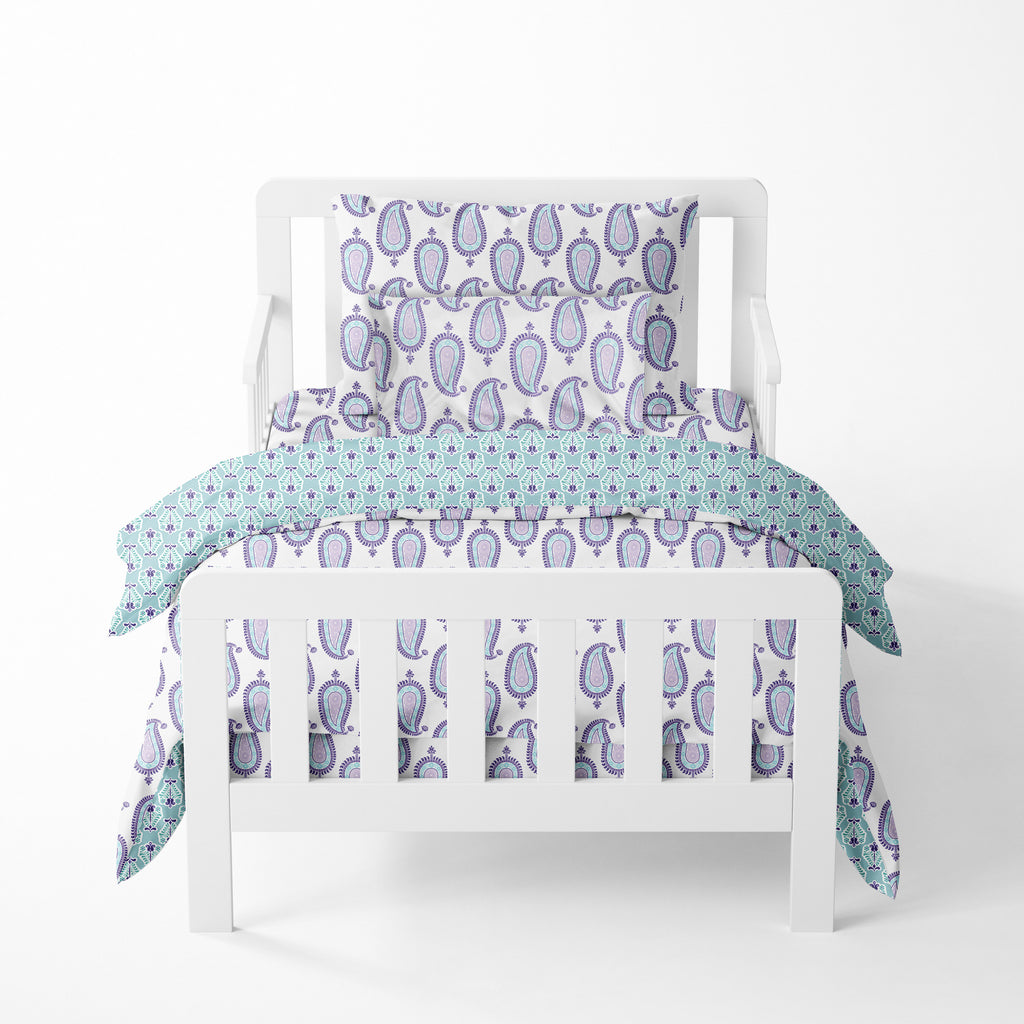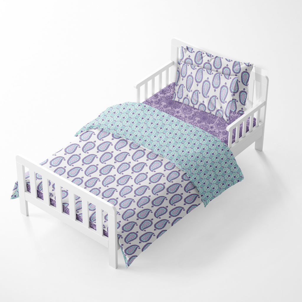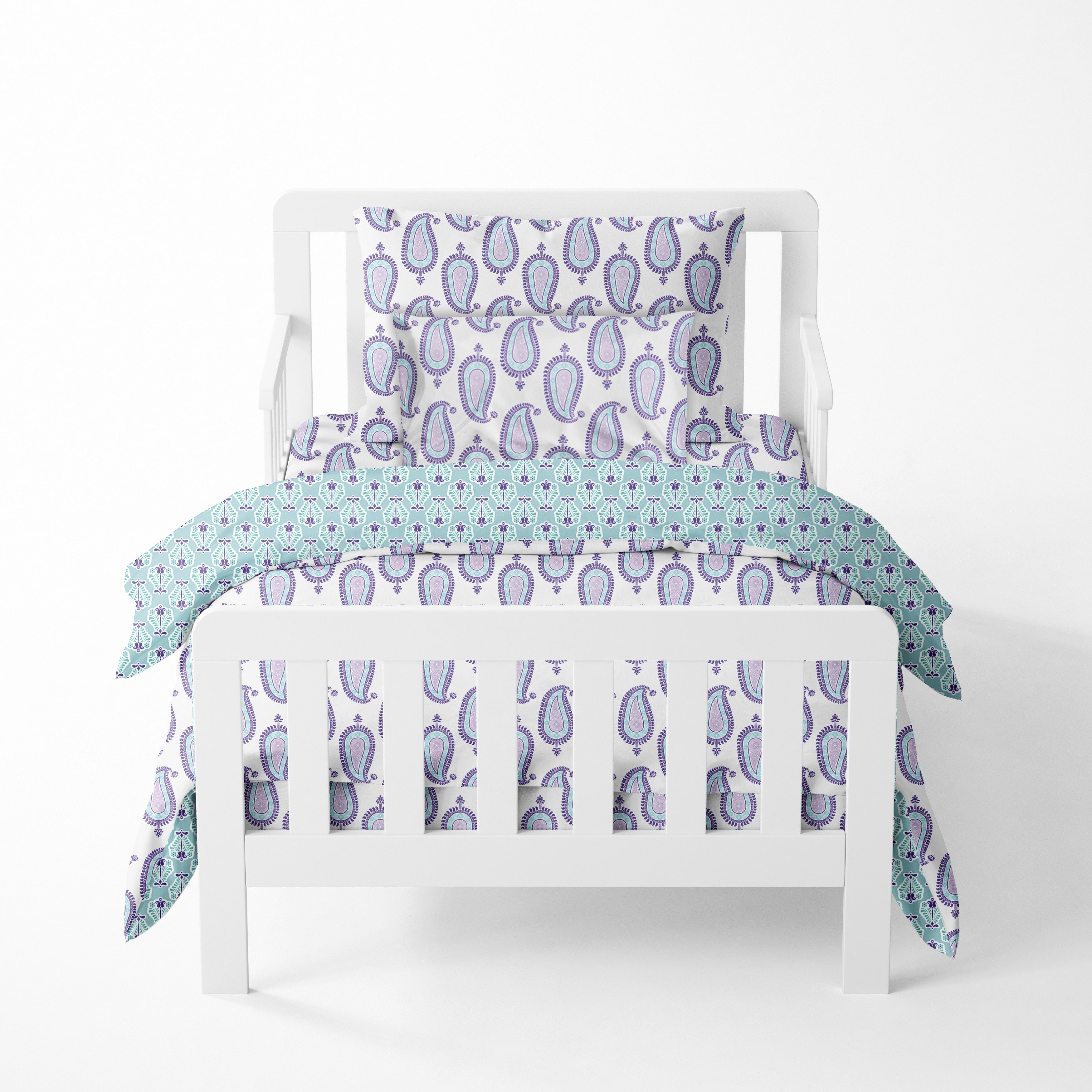 - Complete Toddler Bedding Set: Includes 1 reversible comforter, 2 fitted sheet, 1 Dec pillow, and 1 pillowcase with French ties for added security.