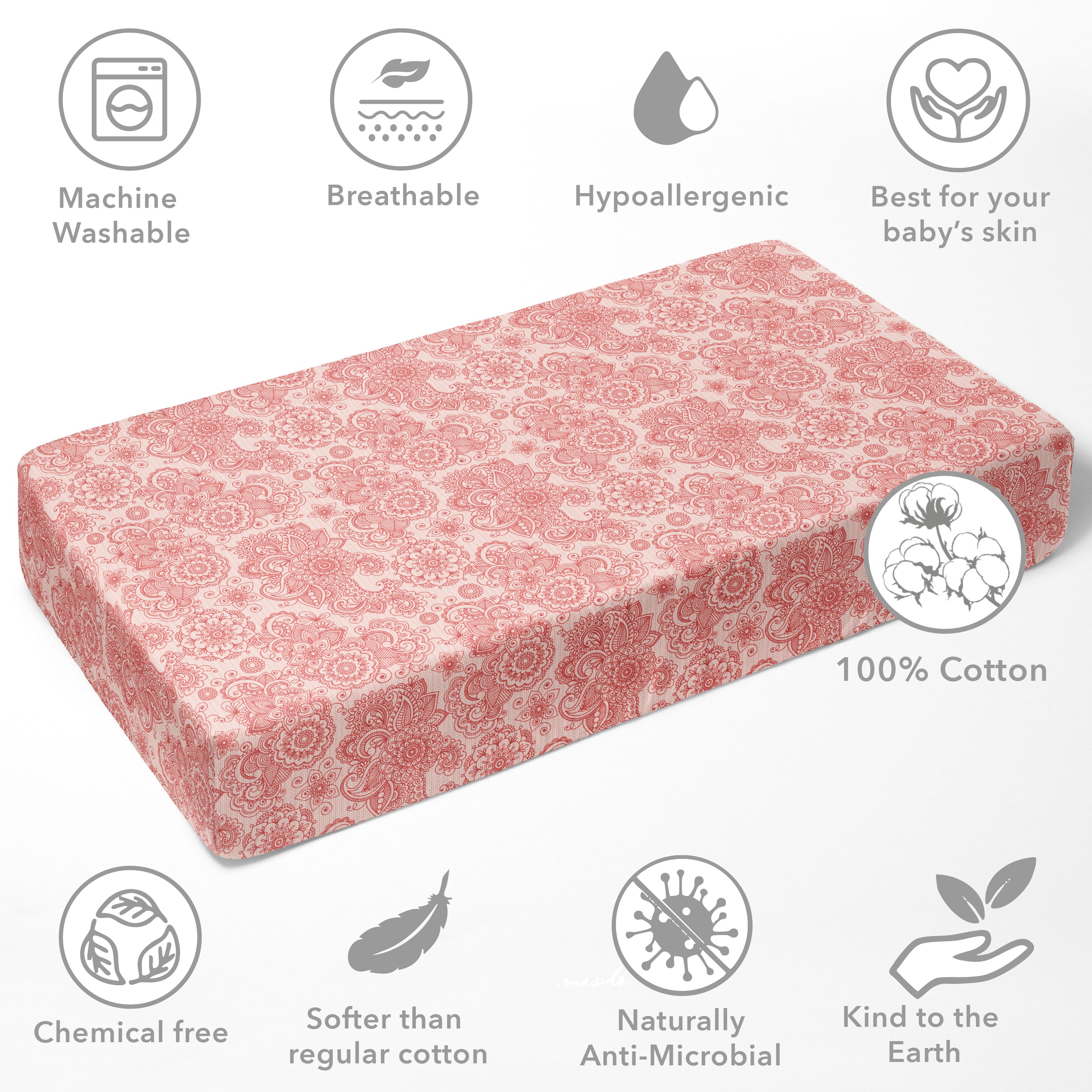 Bacati - Crib or Toddler Bed Fitted Sheet 100% Cotton Percale, Paisley Sophia Scroll Coral