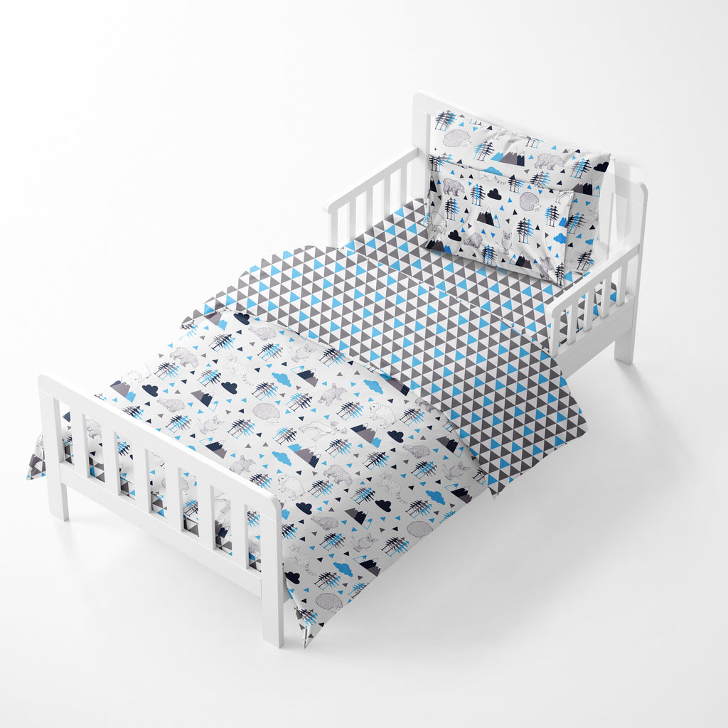 - Complete Toddler Bedding Set: Includes 1 reversible comforter, 2 fitted sheets, 1 Dec Pillow and 1 pillowcase with French ties for added security.