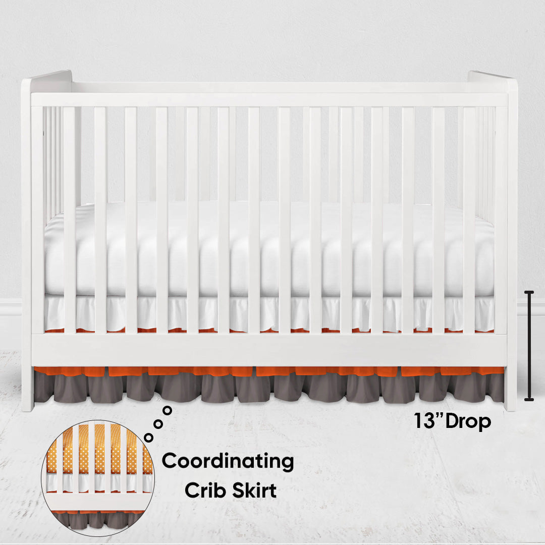 Bacati - 3 Layers Ruffled Crib or Toddler Bed Skirt or Dust Ruffle White/Orange/Grey