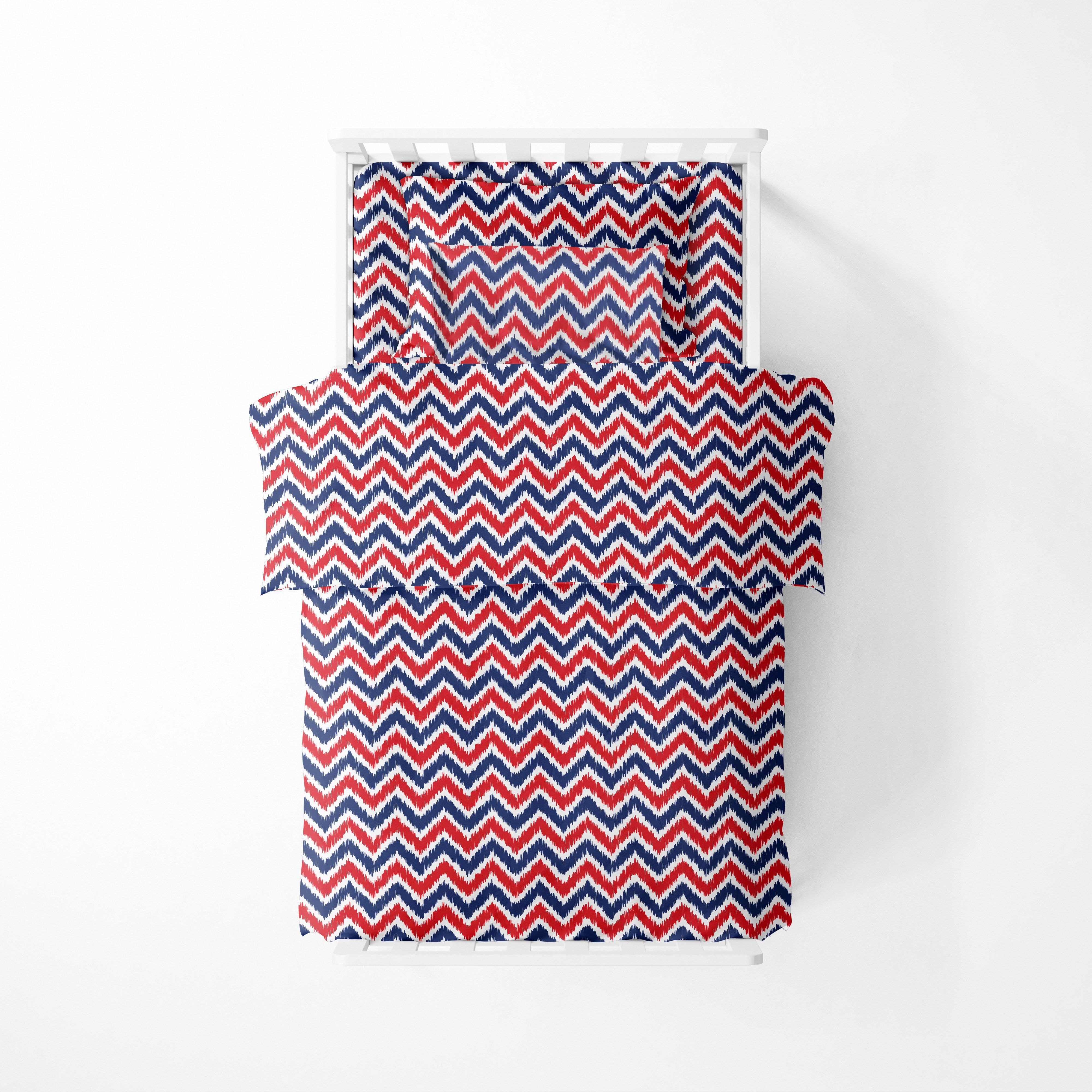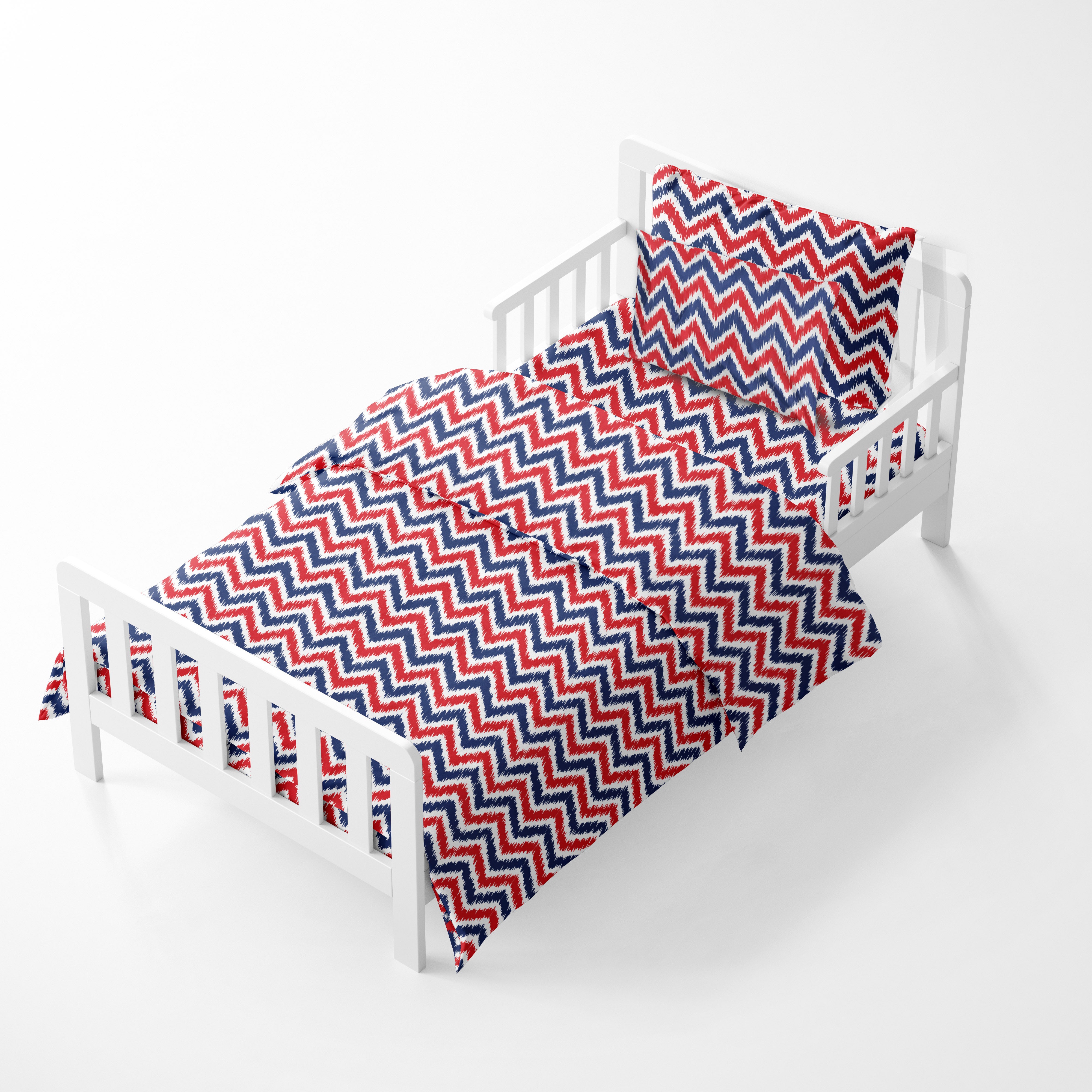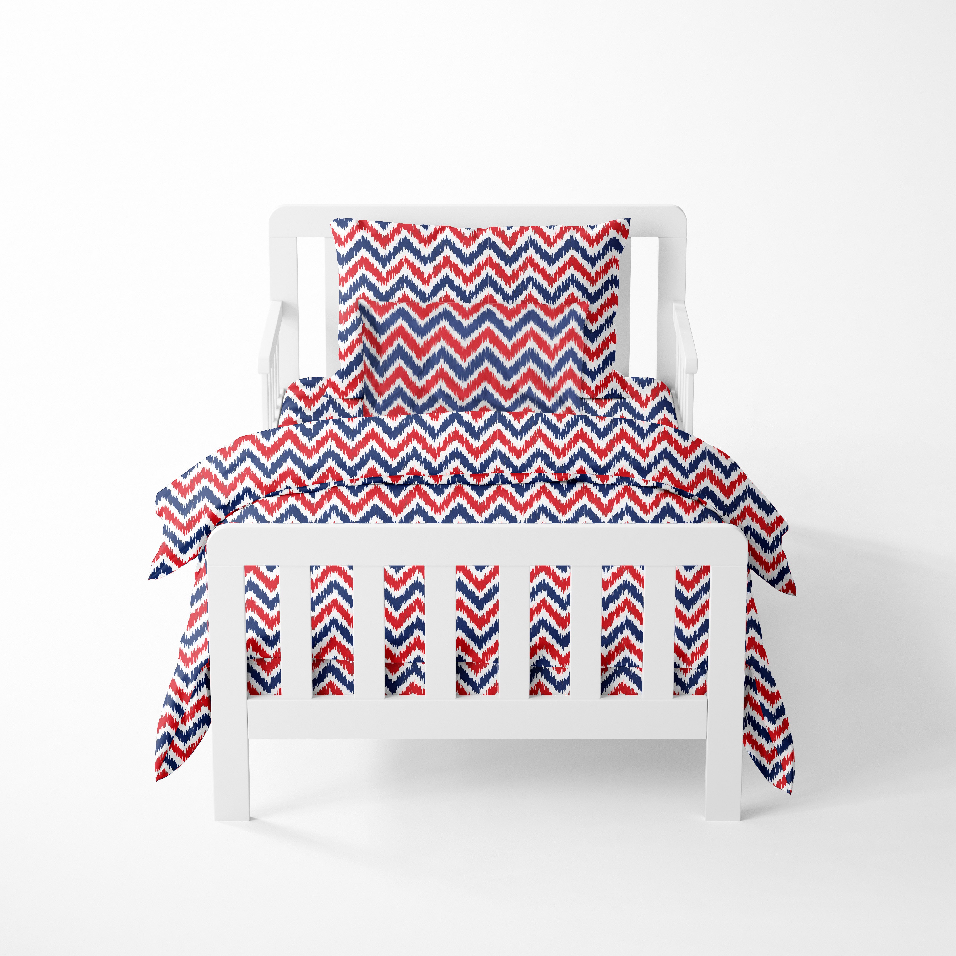Bacati - Boys 5 pc Toddler Bedding Set 100% Cotton Percale, Mix N Match Zigzag Allover Print, Red/Navy