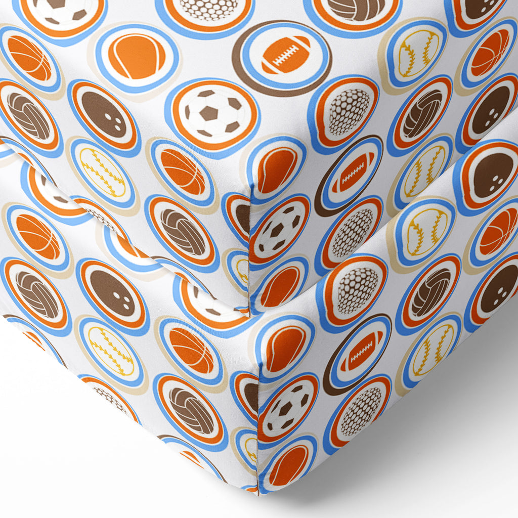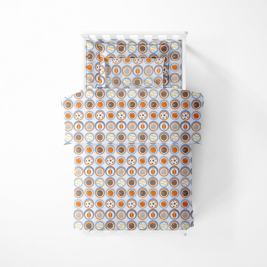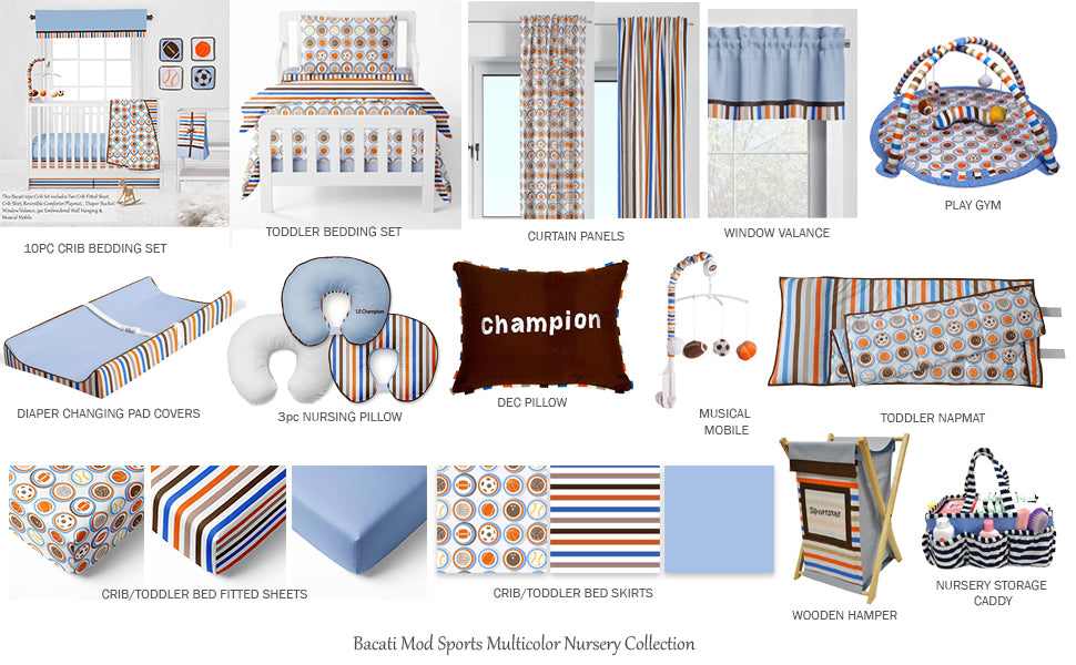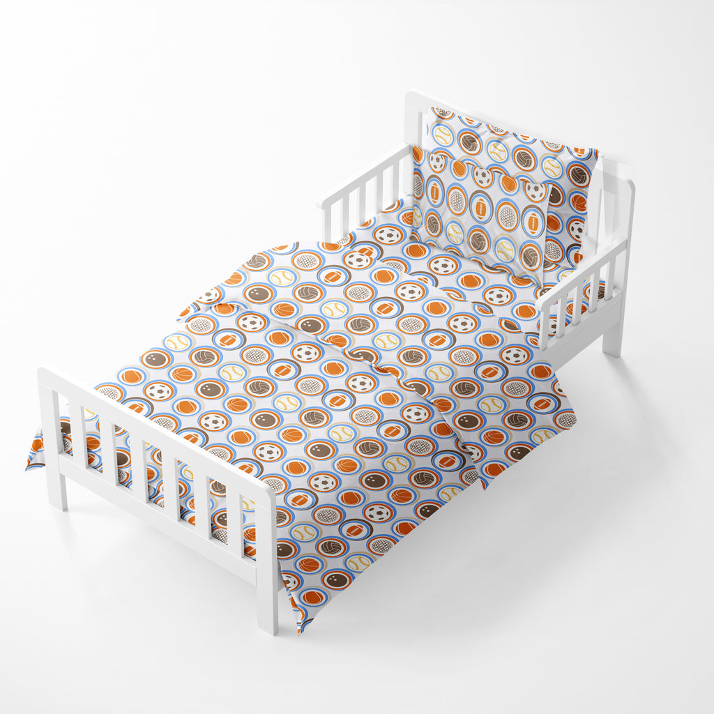 Bacati - Boys 5 pc Toddler Bedding Set 100% Cotton Percale, Mod Sports Allover Print New Version Multicolor