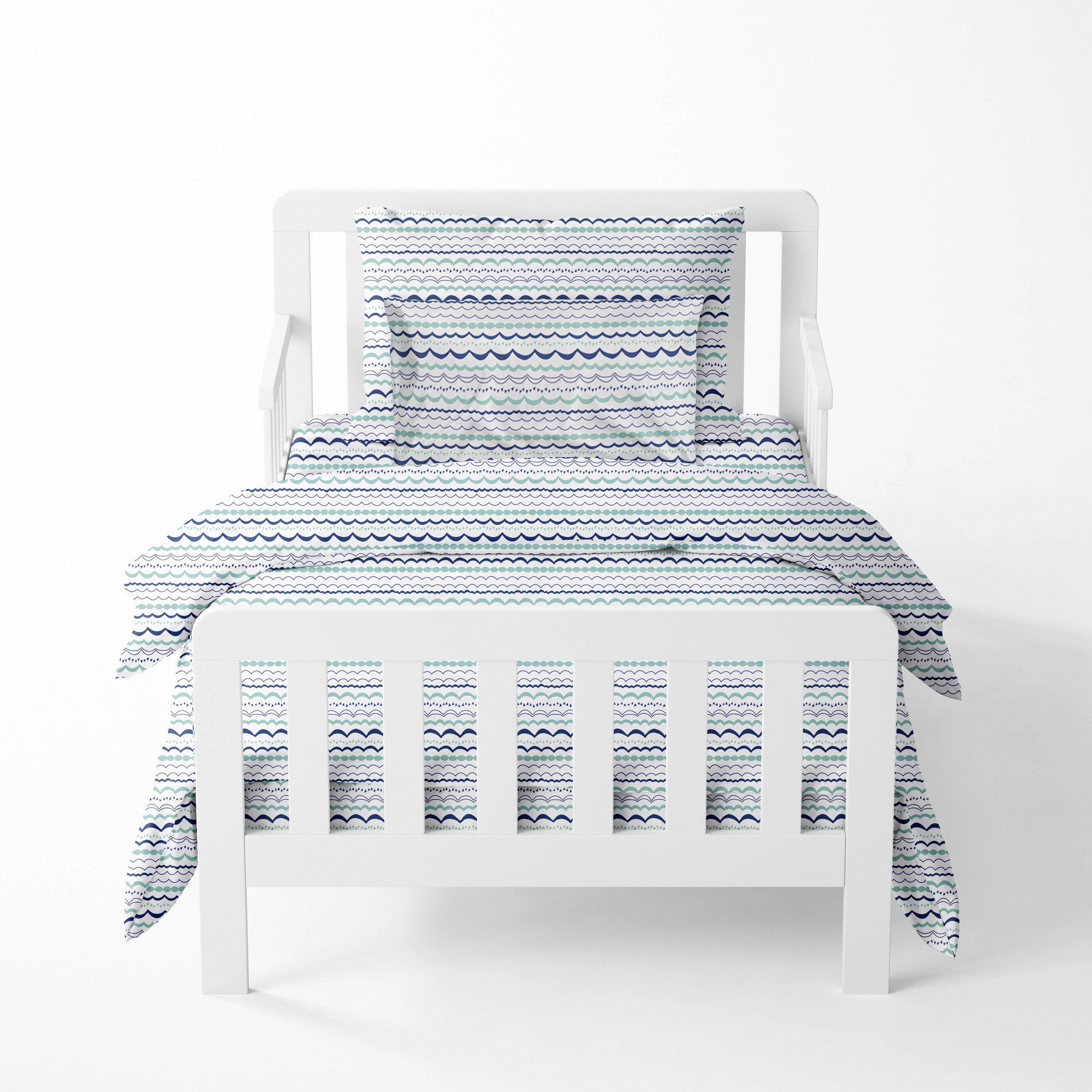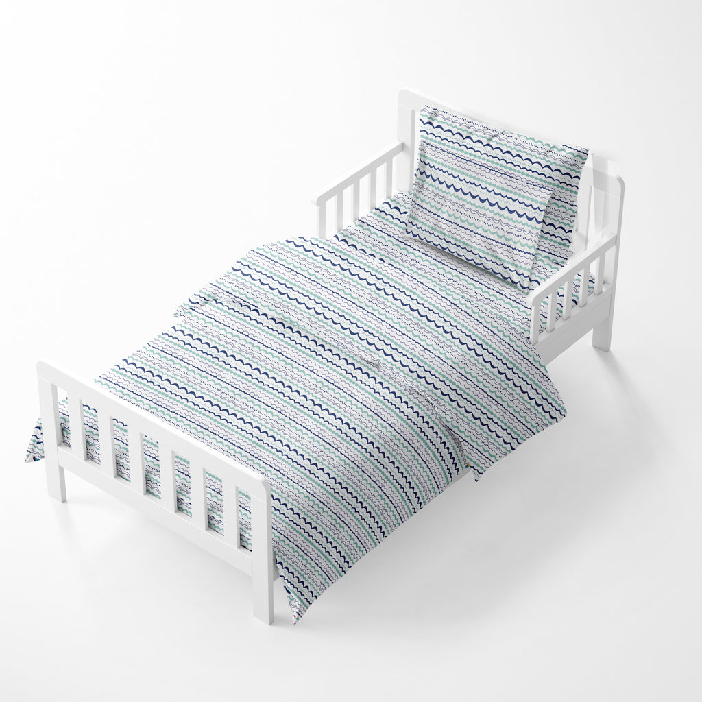 • Complete Toddler Bedding Set: Includes 1 reversible comforter, 2 fitted sheet, 1 Pillow, and 1 pillowcase with French ties for added security.