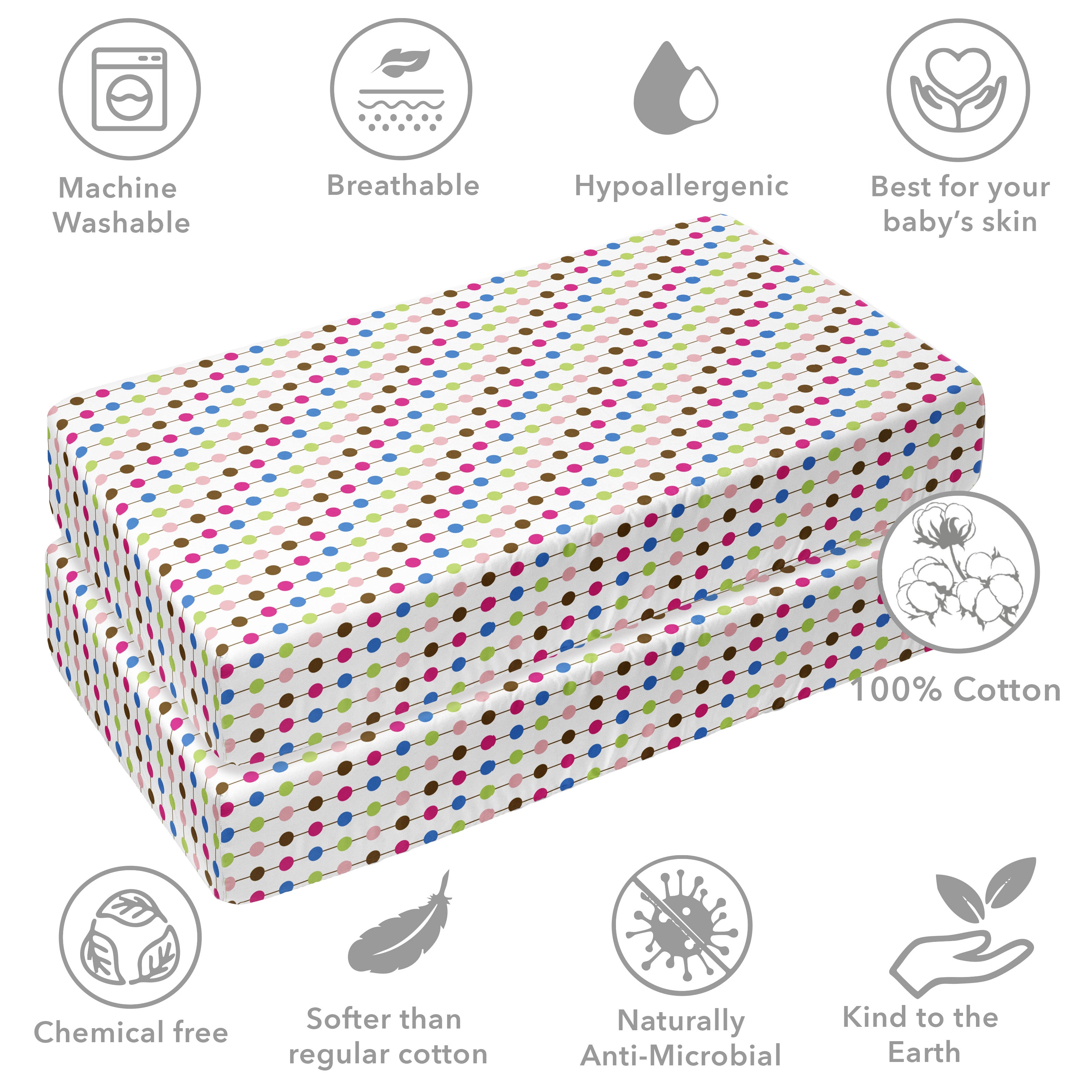 • 100% Premium Cotton Percale: Crafted from high-quality, breathable cotton, providing a smooth, crisp feel that’s gentle on your baby’s delicate skin.
