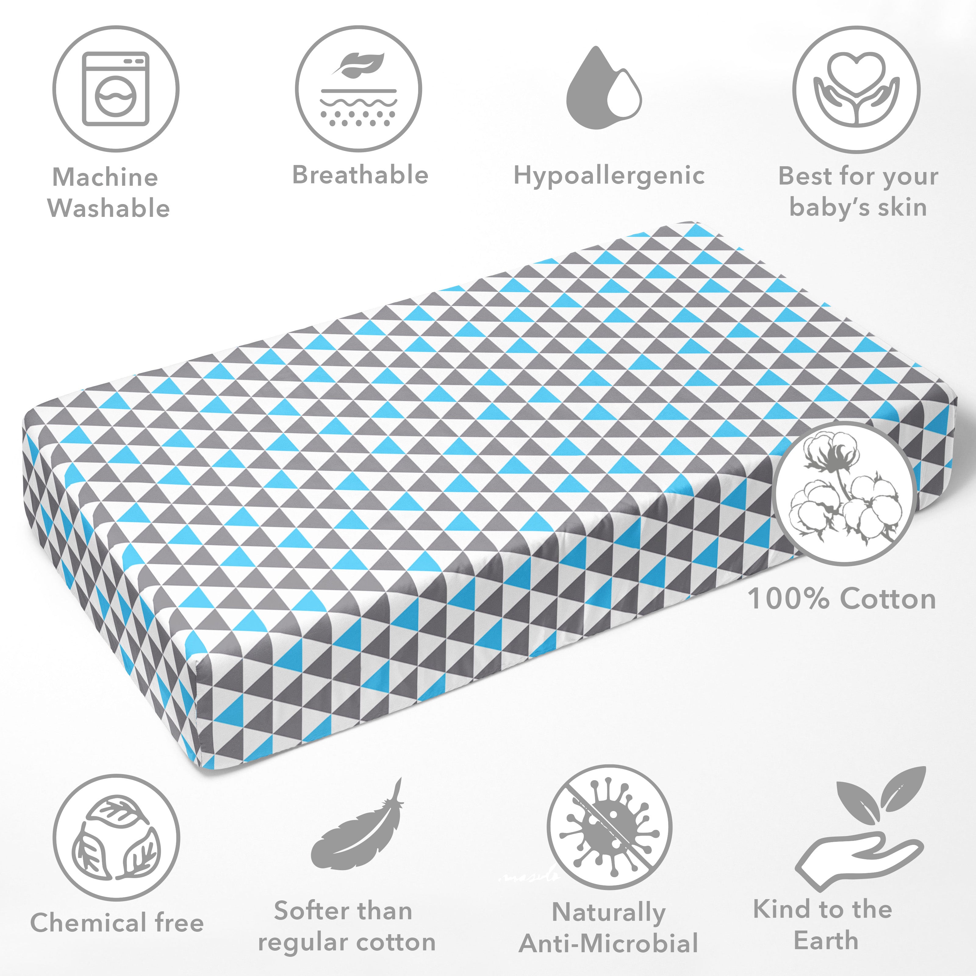• 100% Premium Cotton Percale: Crafted from high-quality, breathable cotton, providing a smooth, crisp feel that’s gentle on your baby’s delicate skin.