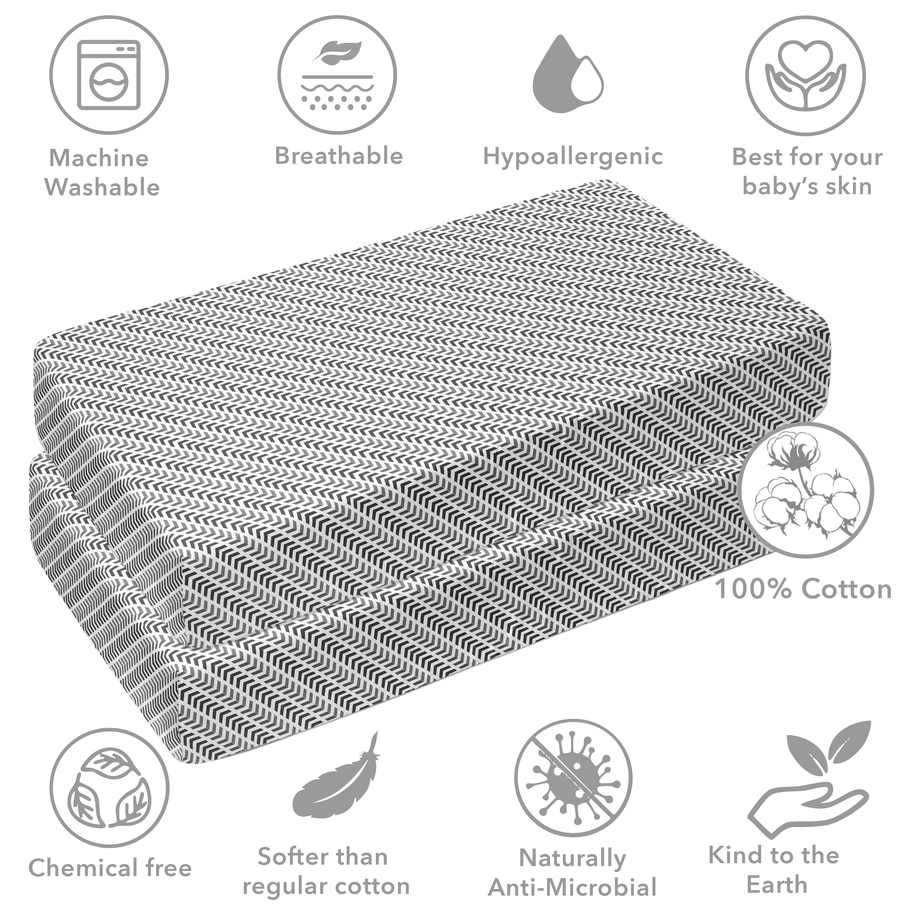 • 100% Premium Cotton Percale: Crafted from high-quality, breathable cotton, providing a smooth, crisp feel that’s gentle on your baby’s delicate skin.