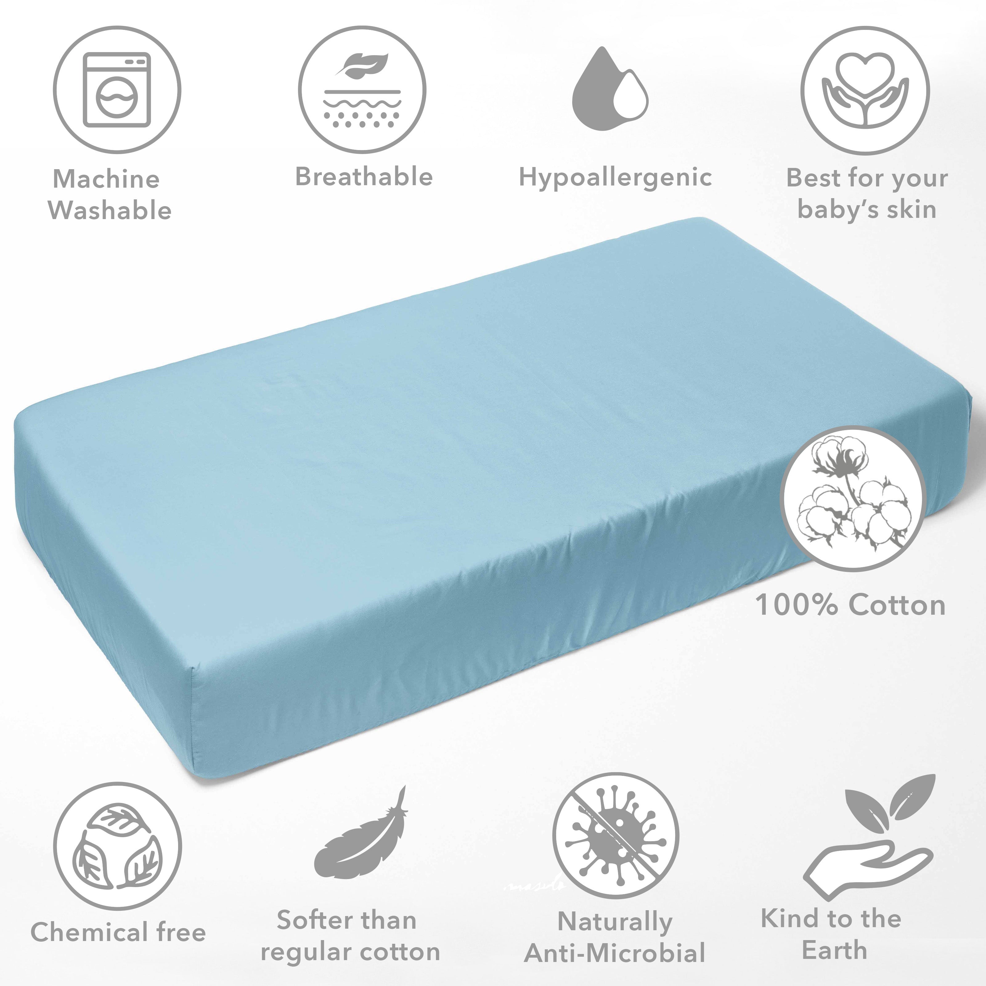 • 100% Premium Cotton Percale: Crafted from high-quality, breathable cotton, providing a smooth, crisp feel that’s gentle on your baby’s delicate skin.