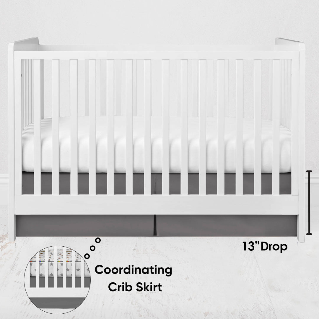 • 3 Piece Crib Set includes one reversible 4-layer muslin lux blanket/playmat, one crib fitted sheet, and one crib skirt/dust ruffle