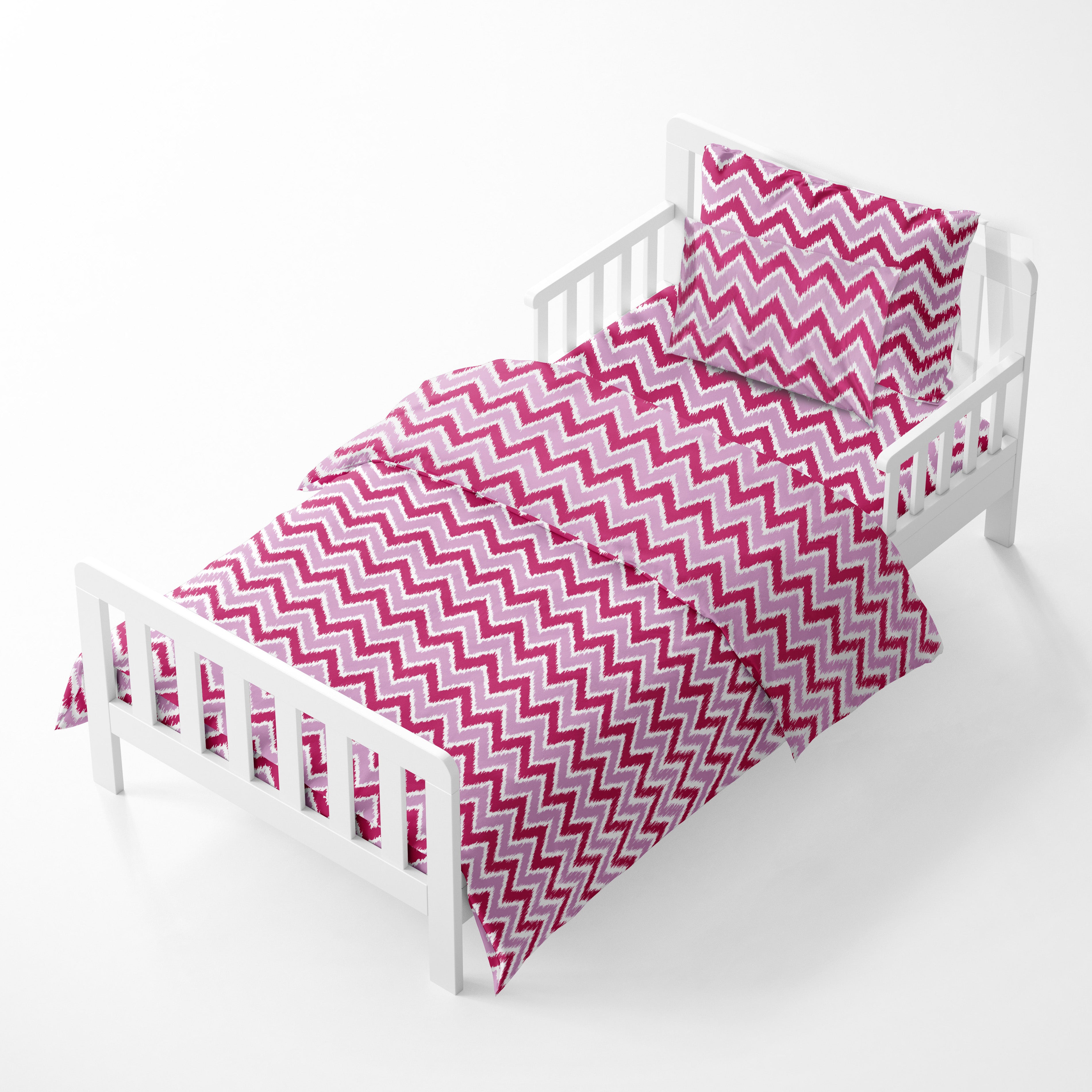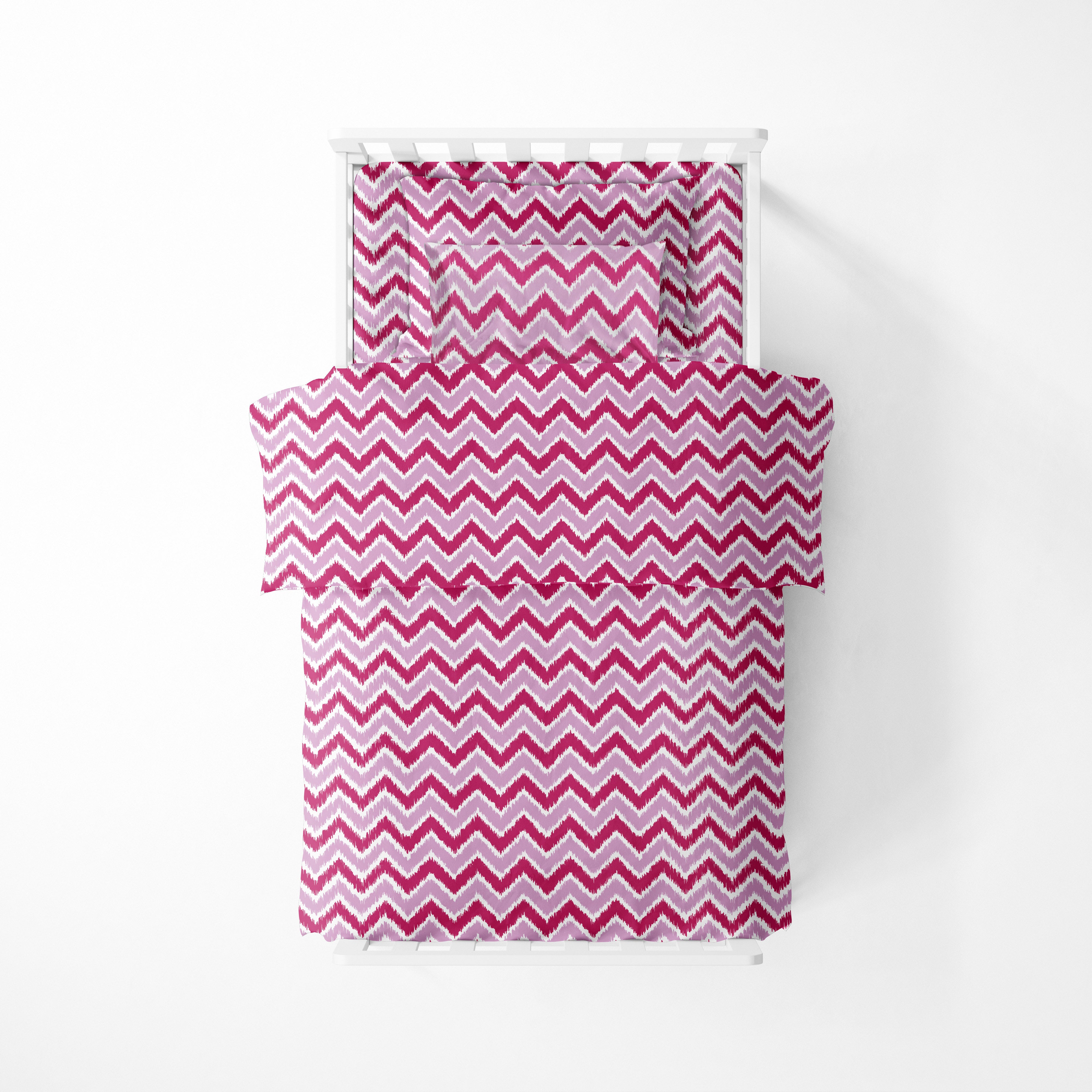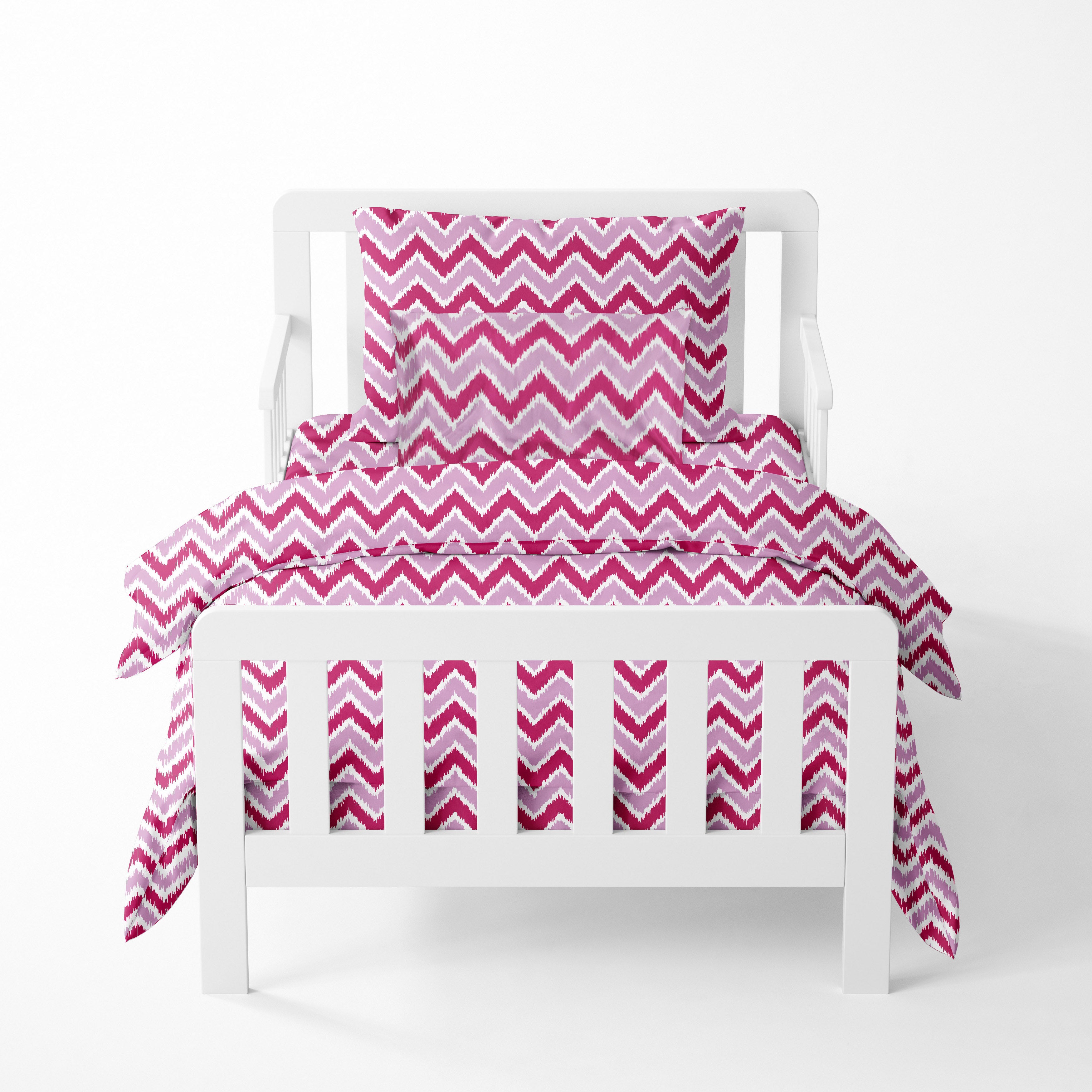Bacati - Girls 5 pc Toddler Bedding Set 100% Cotton Percale, Mix N Match Zigzag Allover Print New Version,Pink