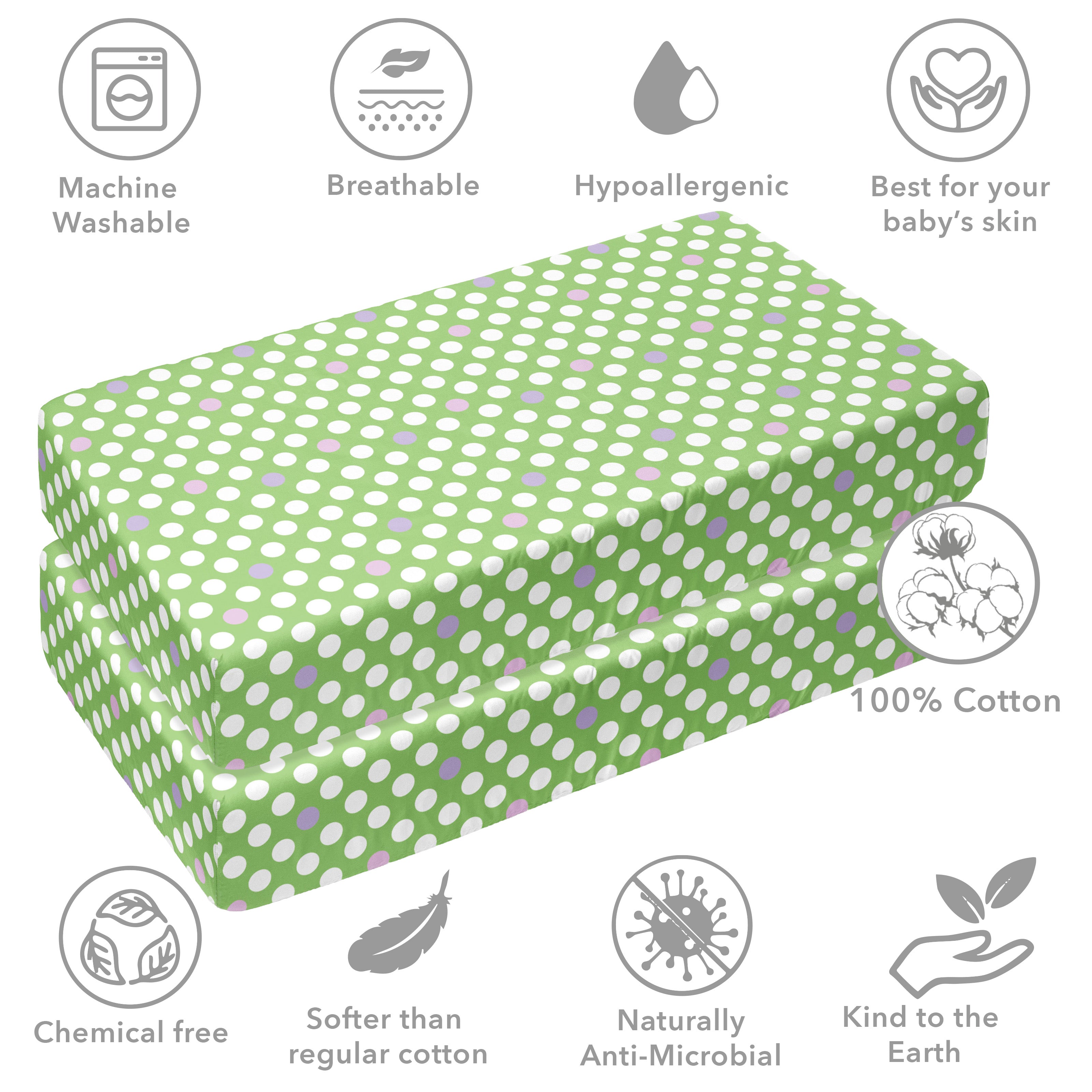 Bacati - Green/Pink/Lilac Dots Crib or Toddler Bed Fitted Sheet 100% Cotton Percale