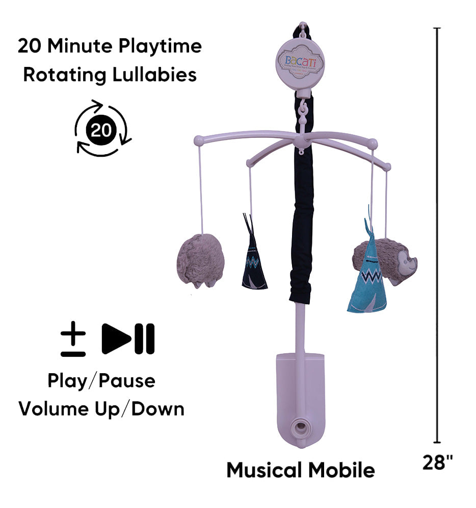 Bacati - Woodlands Animals Aqua/Navy/Grey Musical Baby Crib Mobile