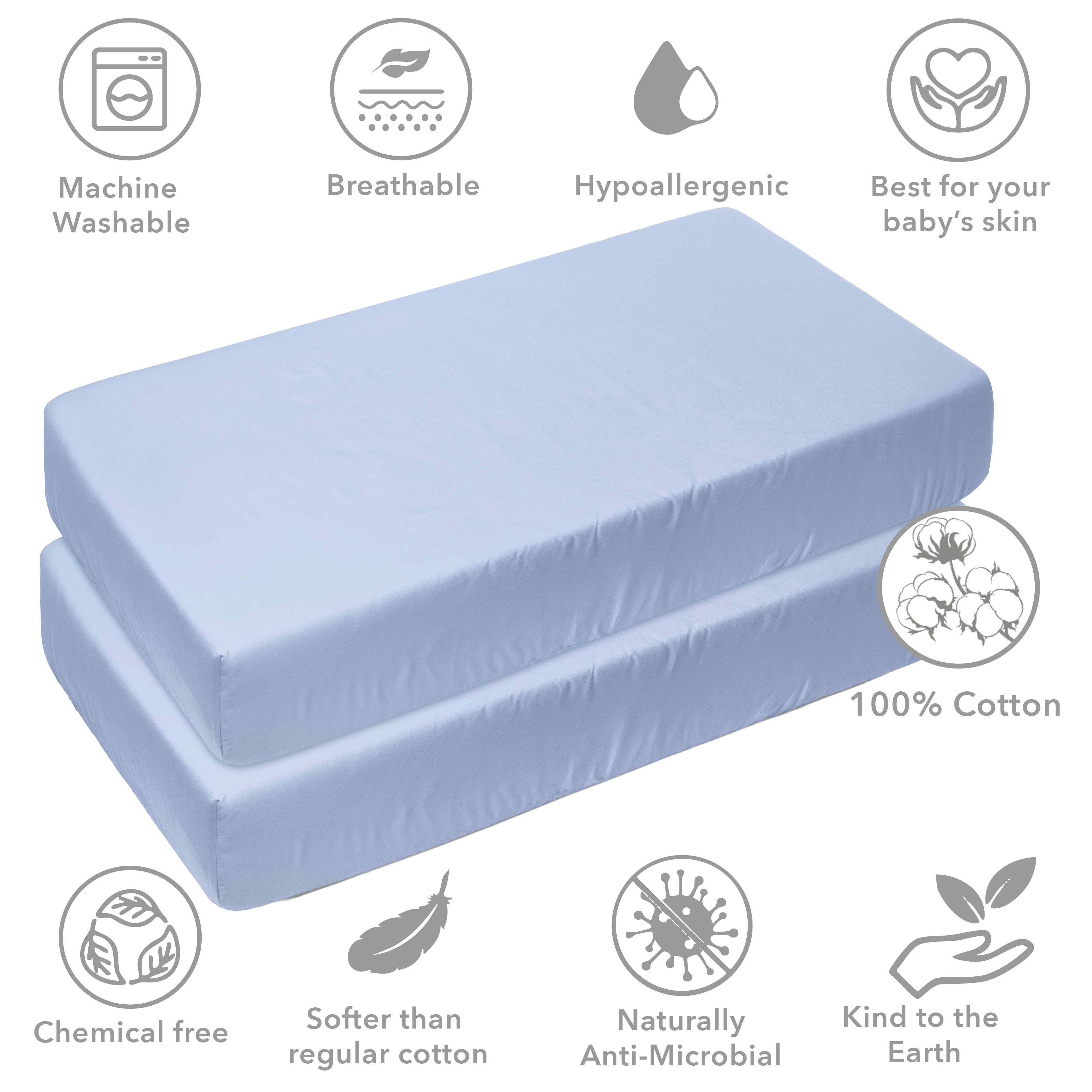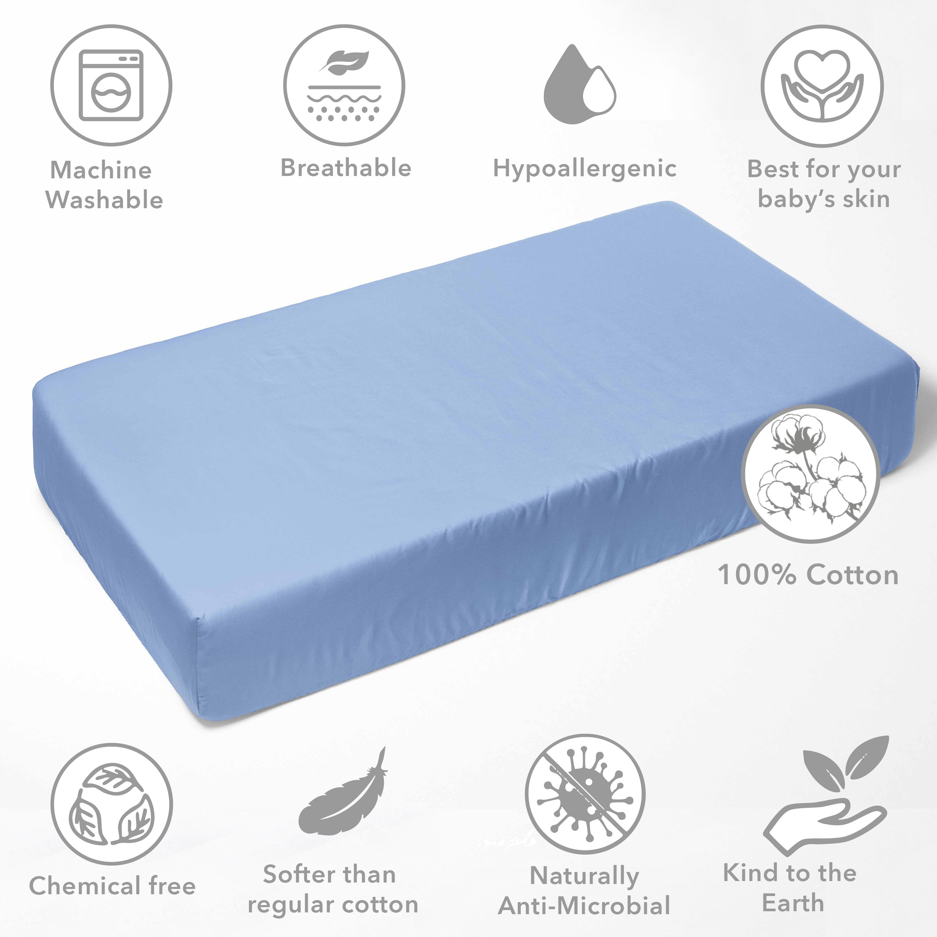 • 100% Premium Cotton Percale: Crafted from high-quality, breathable cotton, providing a smooth, crisp feel that’s gentle on your baby’s delicate skin.
