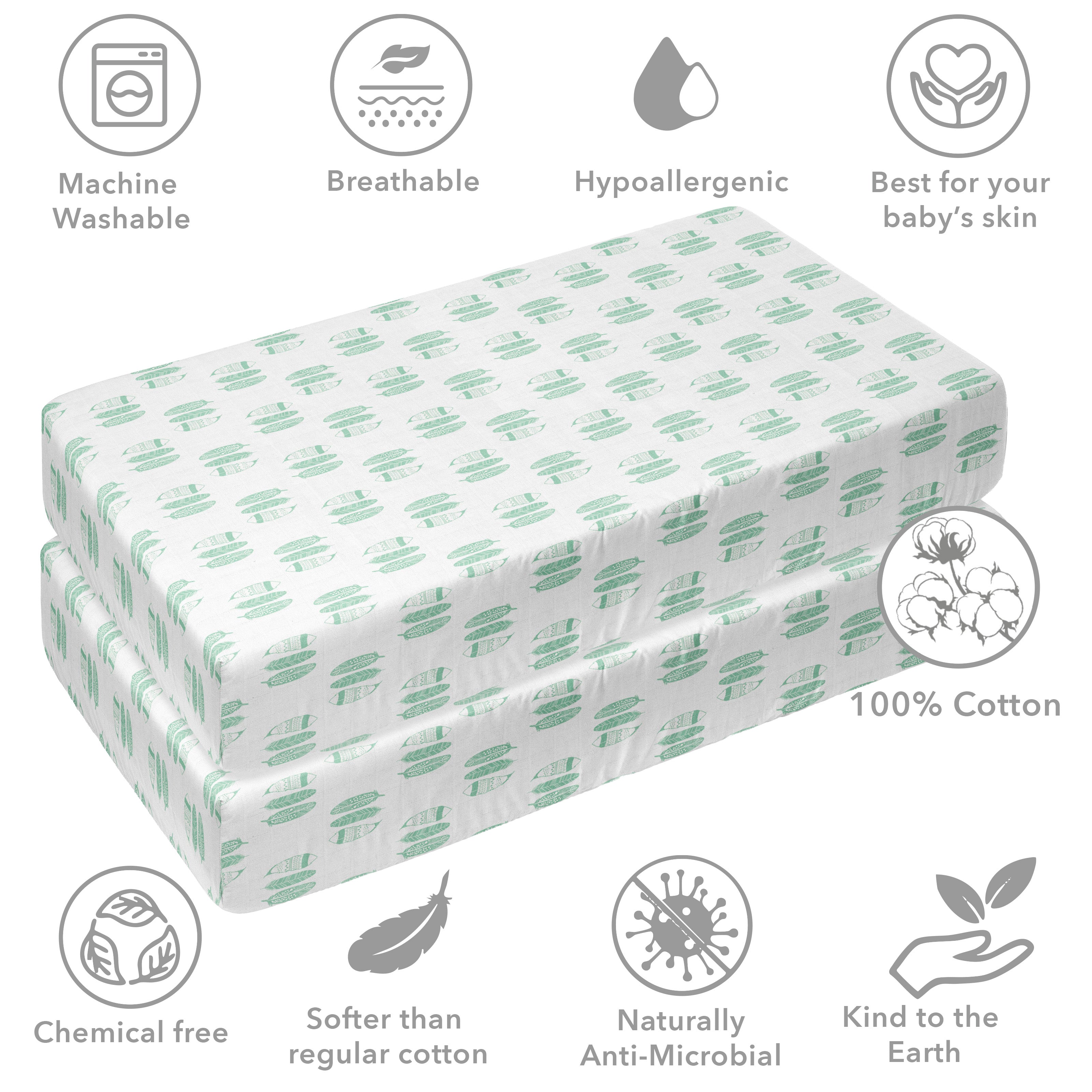 • 100% Premium Cotton Percale: Crafted from high-quality, breathable cotton, providing a smooth, crisp feel that’s gentle on your baby’s delicate skin.