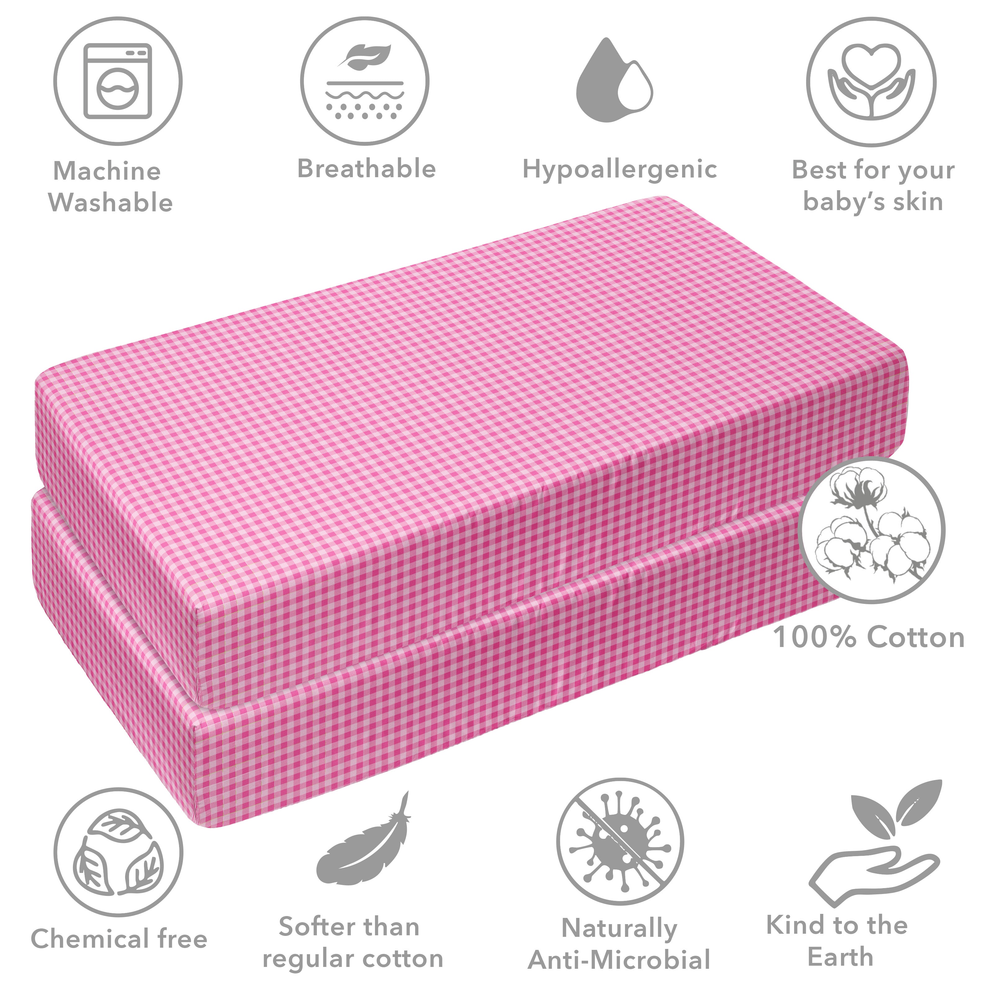 • 100% Premium Cotton Percale: Crafted from high-quality, breathable cotton, providing a smooth, crisp feel that’s gentle on your baby’s delicate skin.