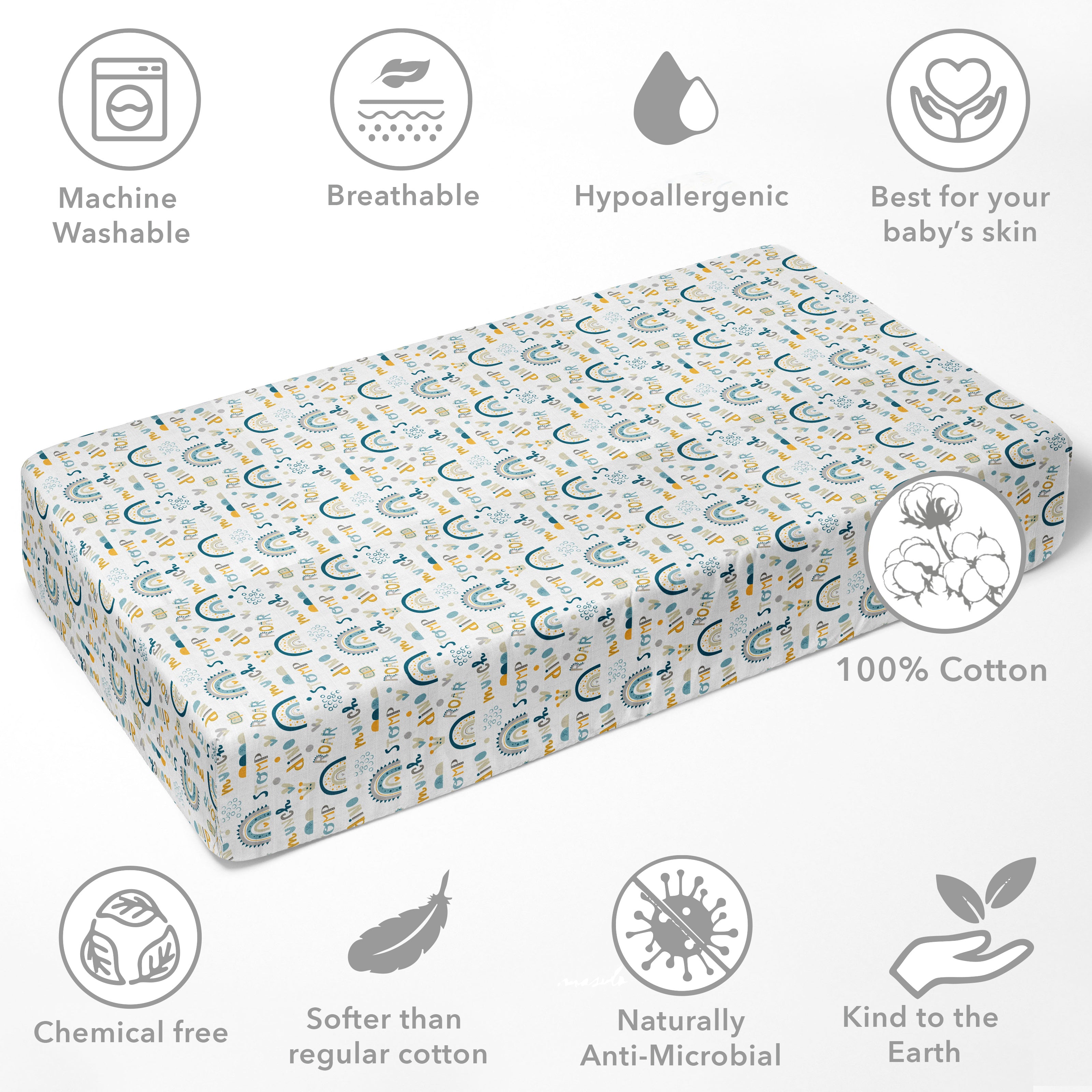 • 100% Premium Cotton Percale: Crafted from high-quality, breathable cotton, providing a smooth, crisp feel that’s gentle on your baby’s delicate skin.